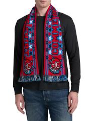 This scarf from Comme des Garçons is jacquard-knit with a signature logo tape design. Fringed ends complete this style.