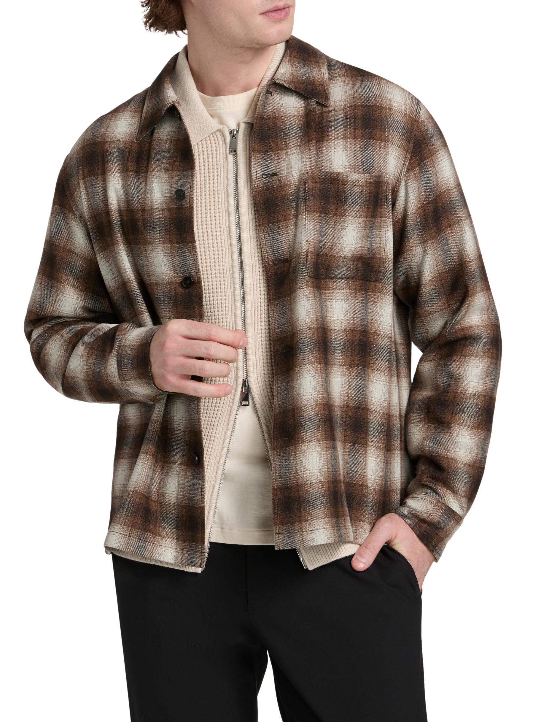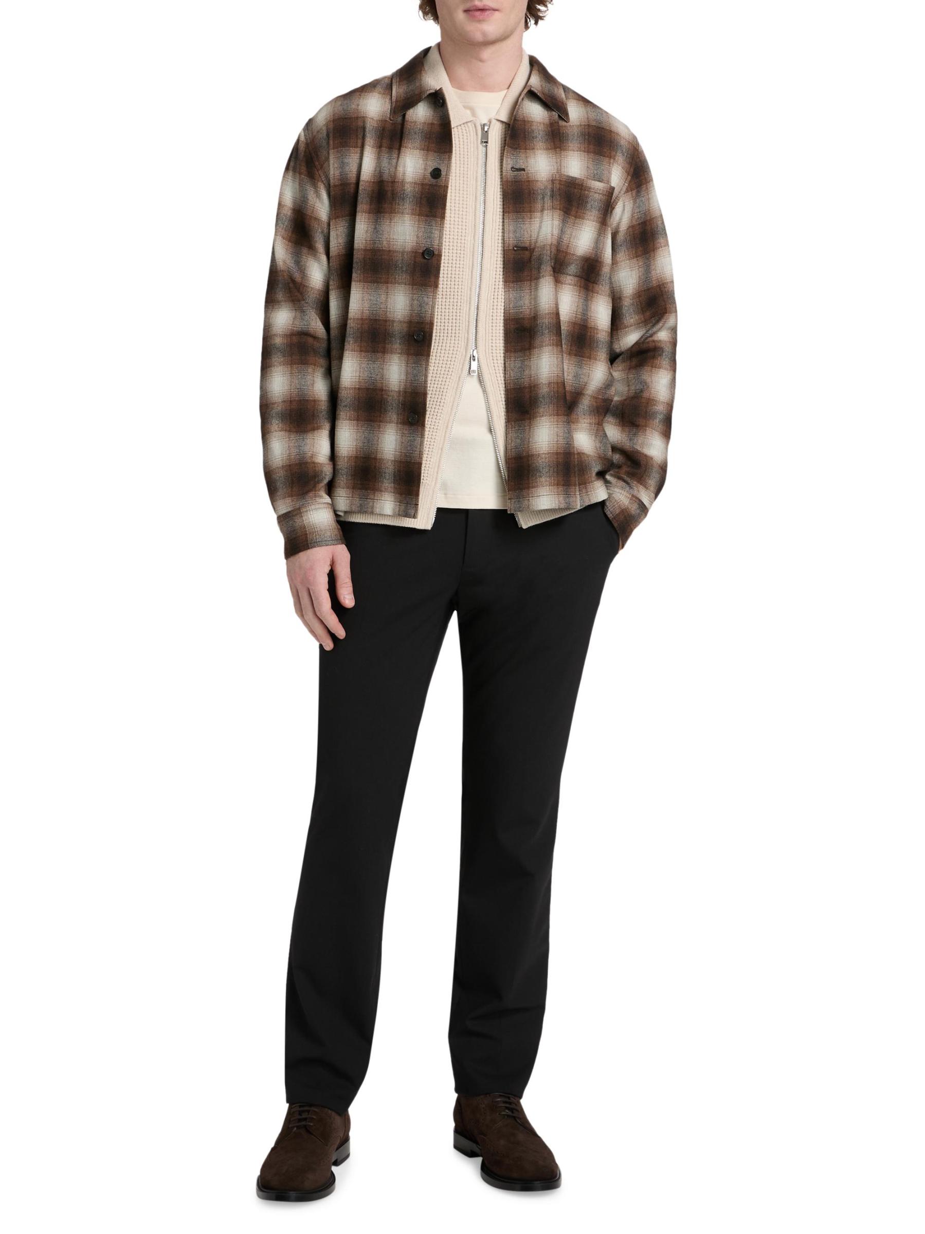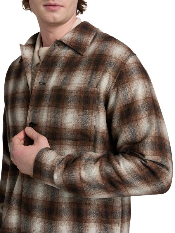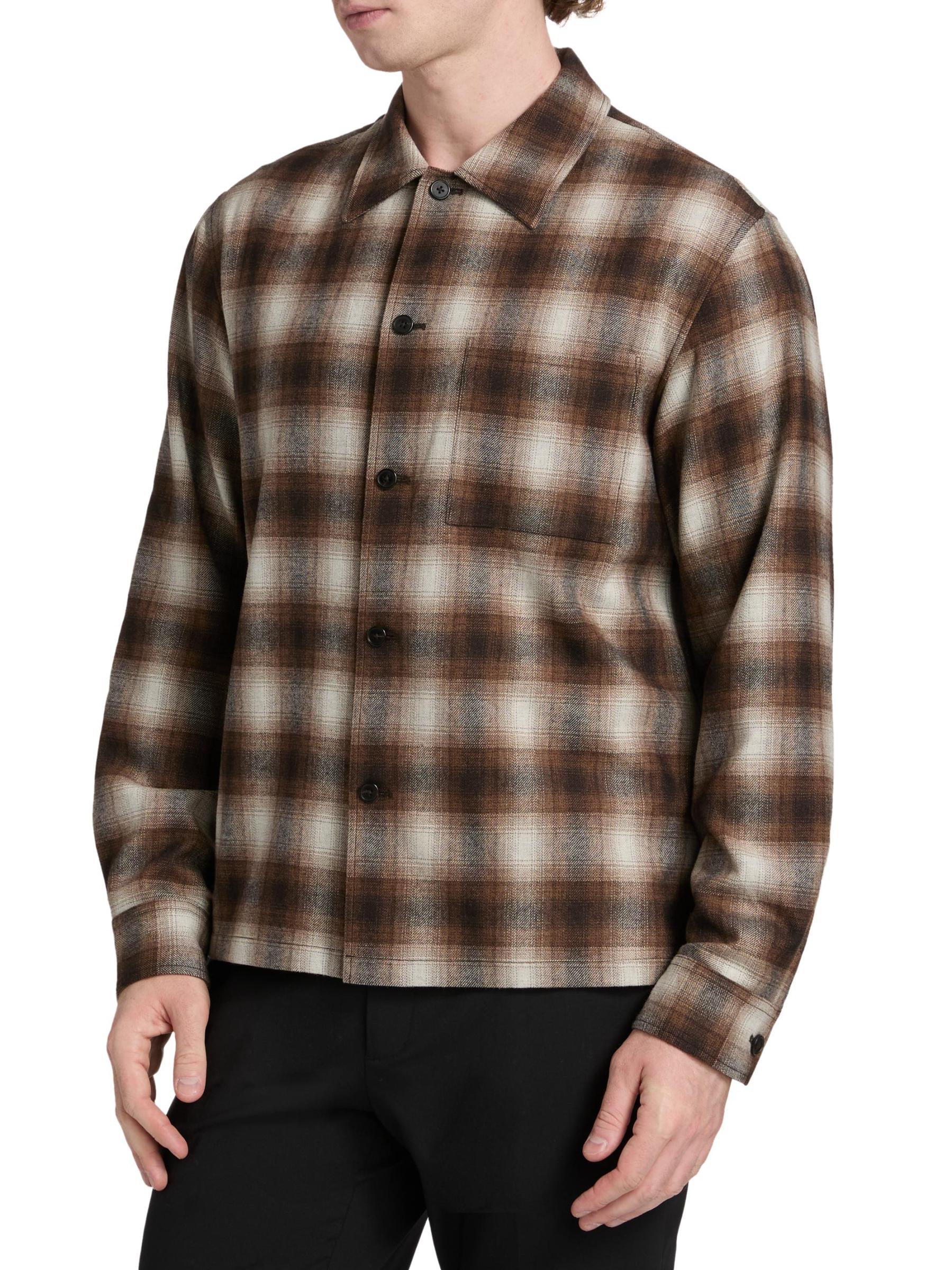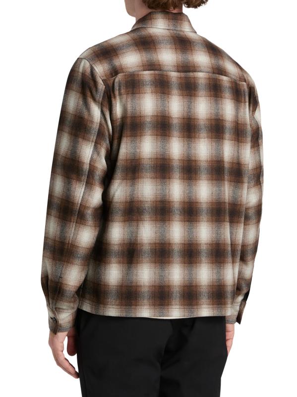 This Theory wool-blend shirt is styled with a spread collar and check pattern.
