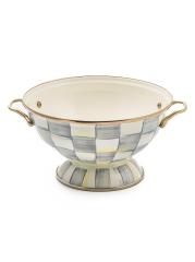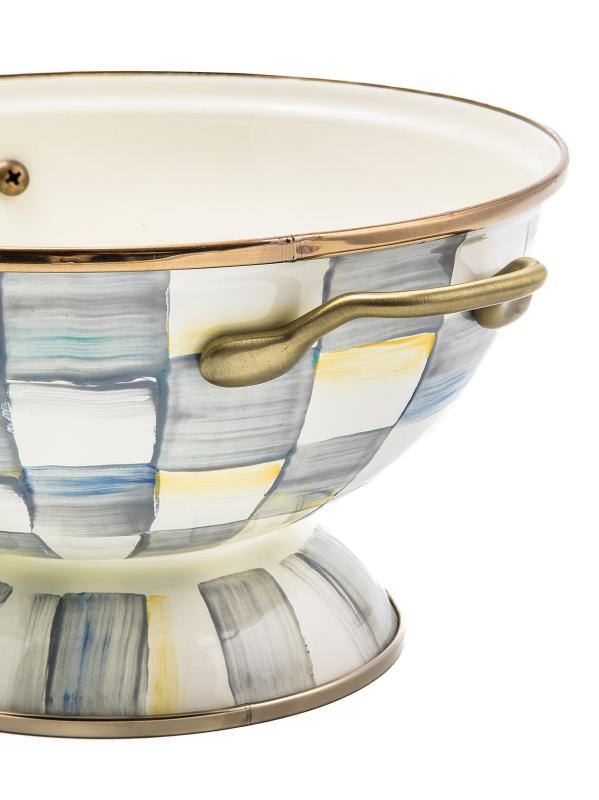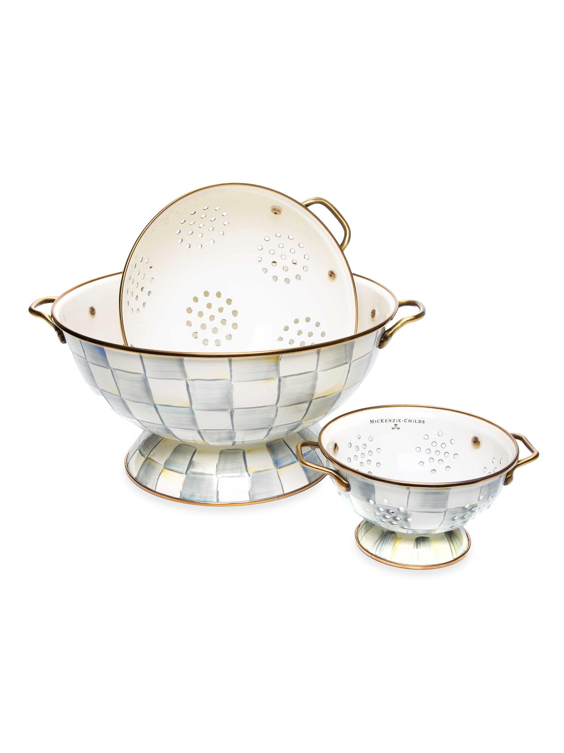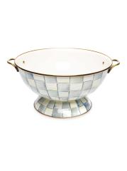 Hand-painted with MacKenzie-Childs' signature checks, this heavy-gauge, hand-glazed steel bowl is styled with brass-finished handles and is perfectly sized to accommodate everything from fruit to a dinner party salad.