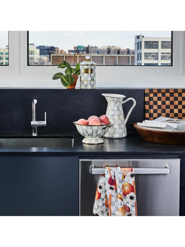 Hand-painted with MacKenzie-Childs' signature checks, this heavy-gauge, hand-glazed steel bowl is styled with brass-finished handles and is perfectly sized to accommodate everything from fruit to a dinner party salad.Steel/enamel Dishwasher safe Imported