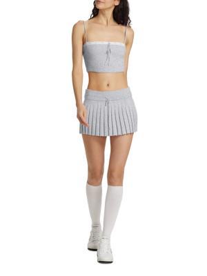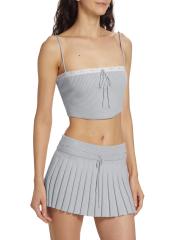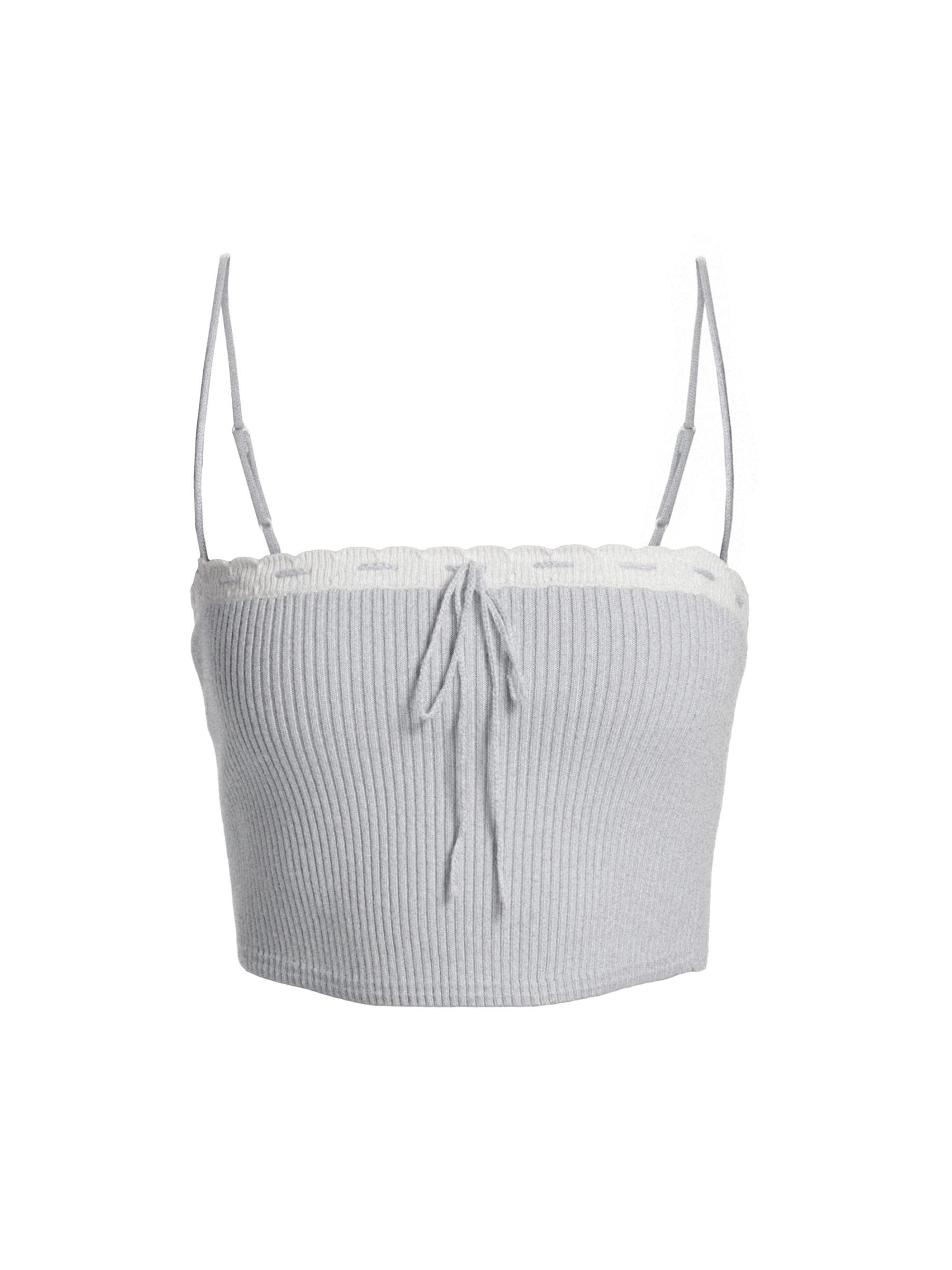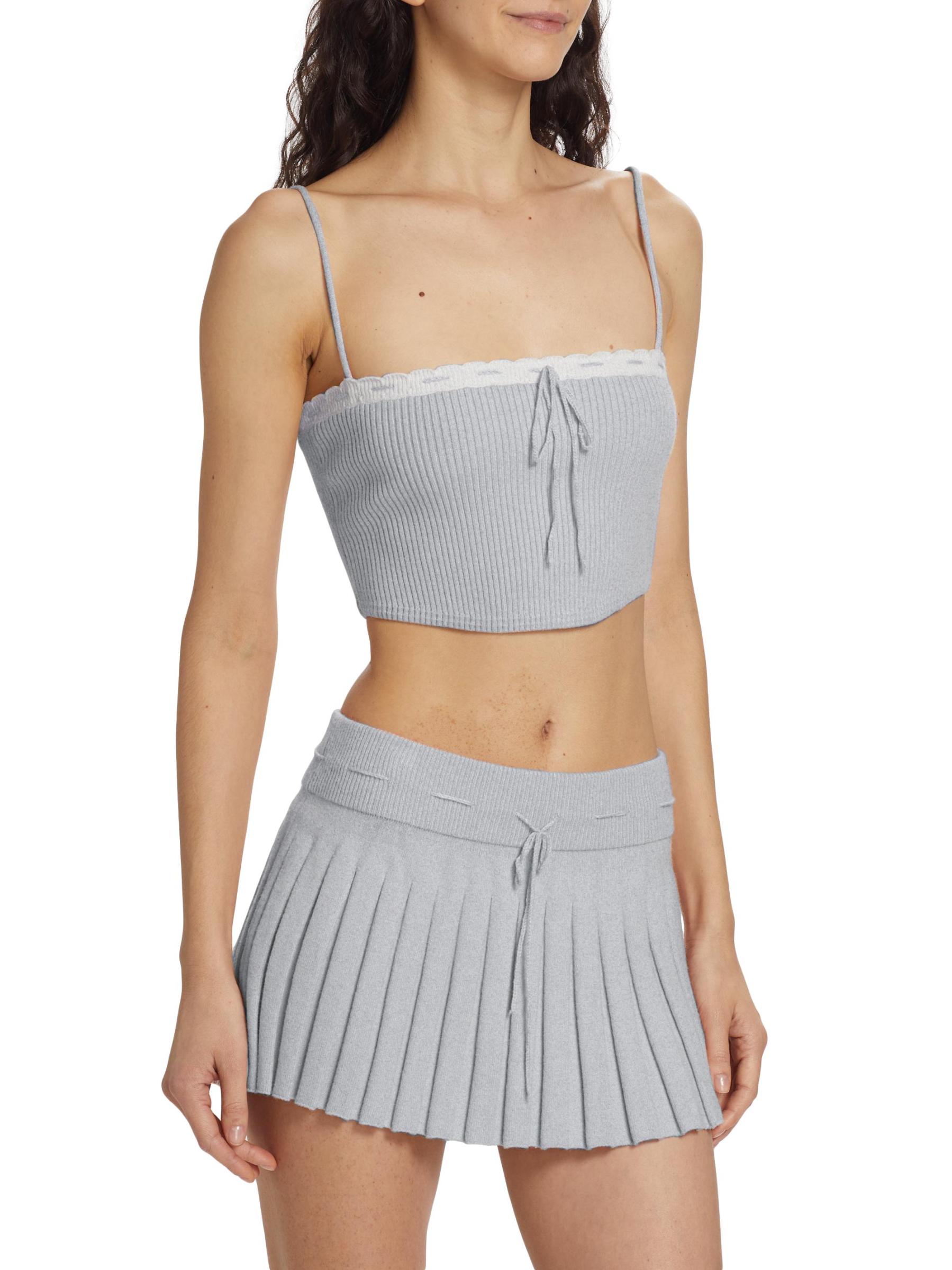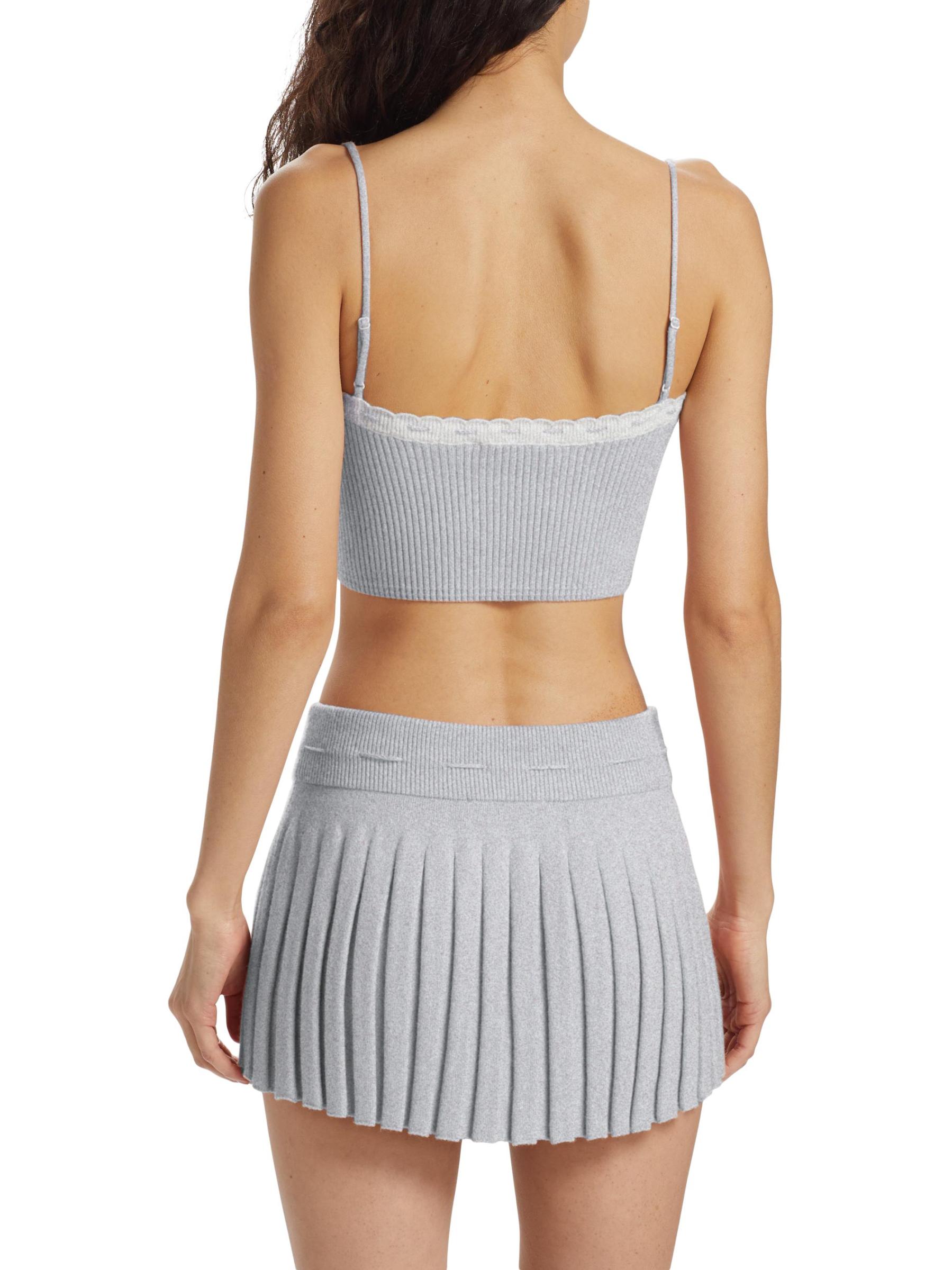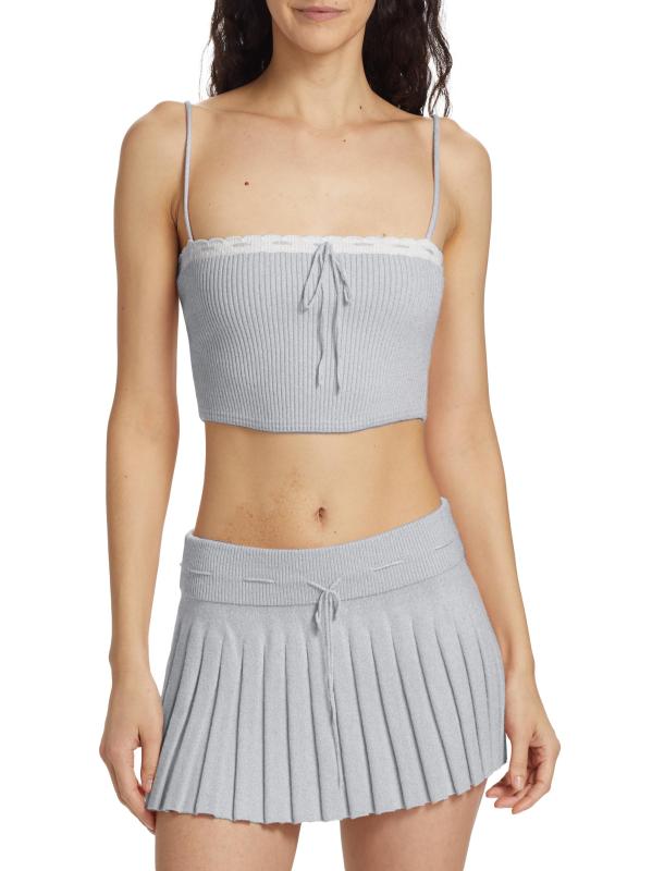 GUIZIO's charming rib-knit Cielo crop top flaunts a scallop-knit detail at the neckline with knot bow ties. Featuring adjustable straps, this piece is crafted of a blend of wool and rabbit hair.