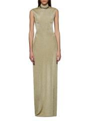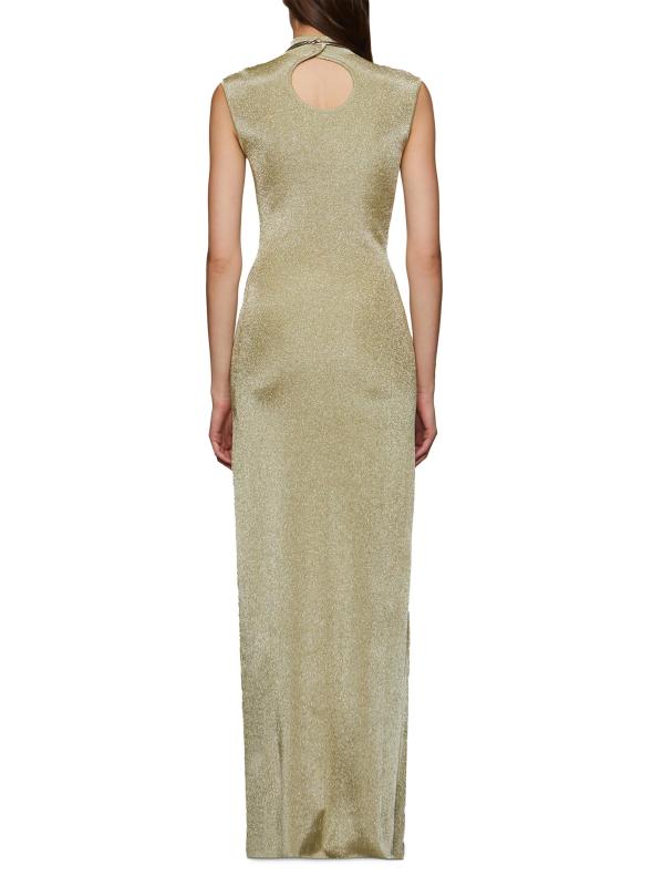Crafted of a compact metallic knit, Et Ochs' Clare sleeveless maxi dress is cut for a sleek, formfitting silhouette and styled with mock turtleneck.Mock turtleneck Sleeveless Pulls over 70% viscose/30% metallized polyester Dry clean Imported