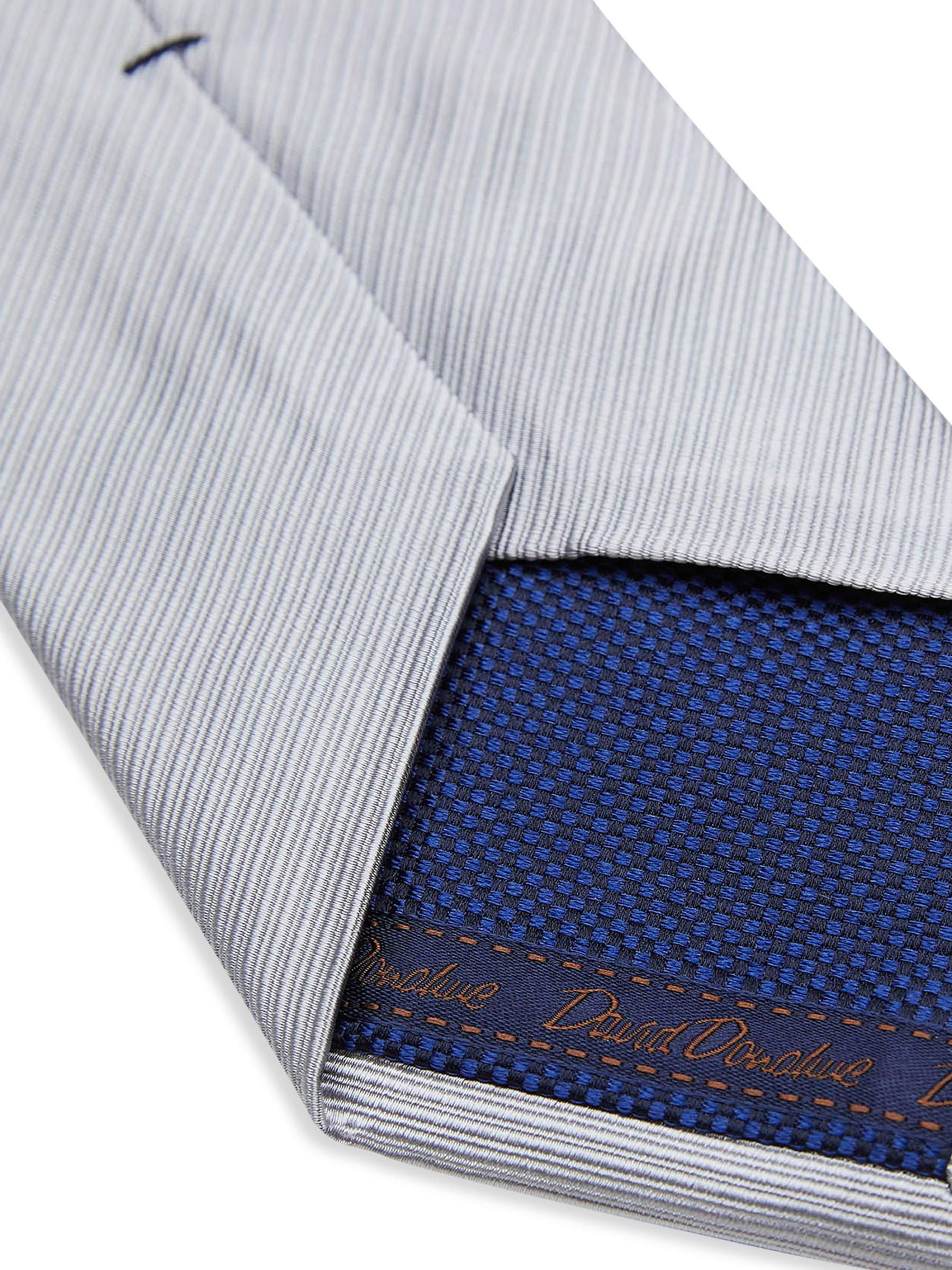 This classic tie is made of silk.100% Silk Lining 1: 55% wool/45% polyester Lining 2: 65% cotton/35% polyester Dry clean Made in USA