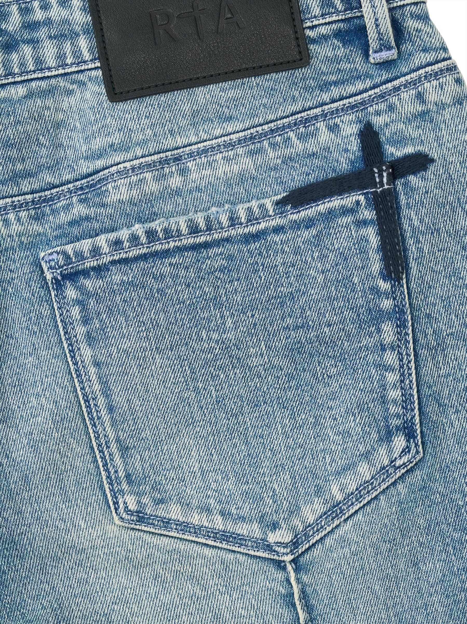 Crafted of stretch-cotton denim, these Clayton skinny-fit jeans from RTA feature a light wash and whiskering.