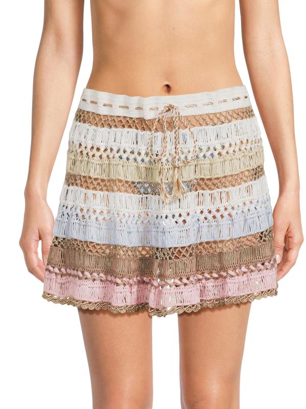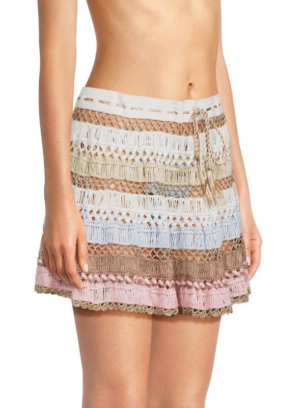 My Beachy Side’s Cleo miniskirt is crafted of a cotton blend and crochet-knit with stripes.Drawstring waistband Scalloped hem 60% cotton/40% acrylic Dry clean Imported