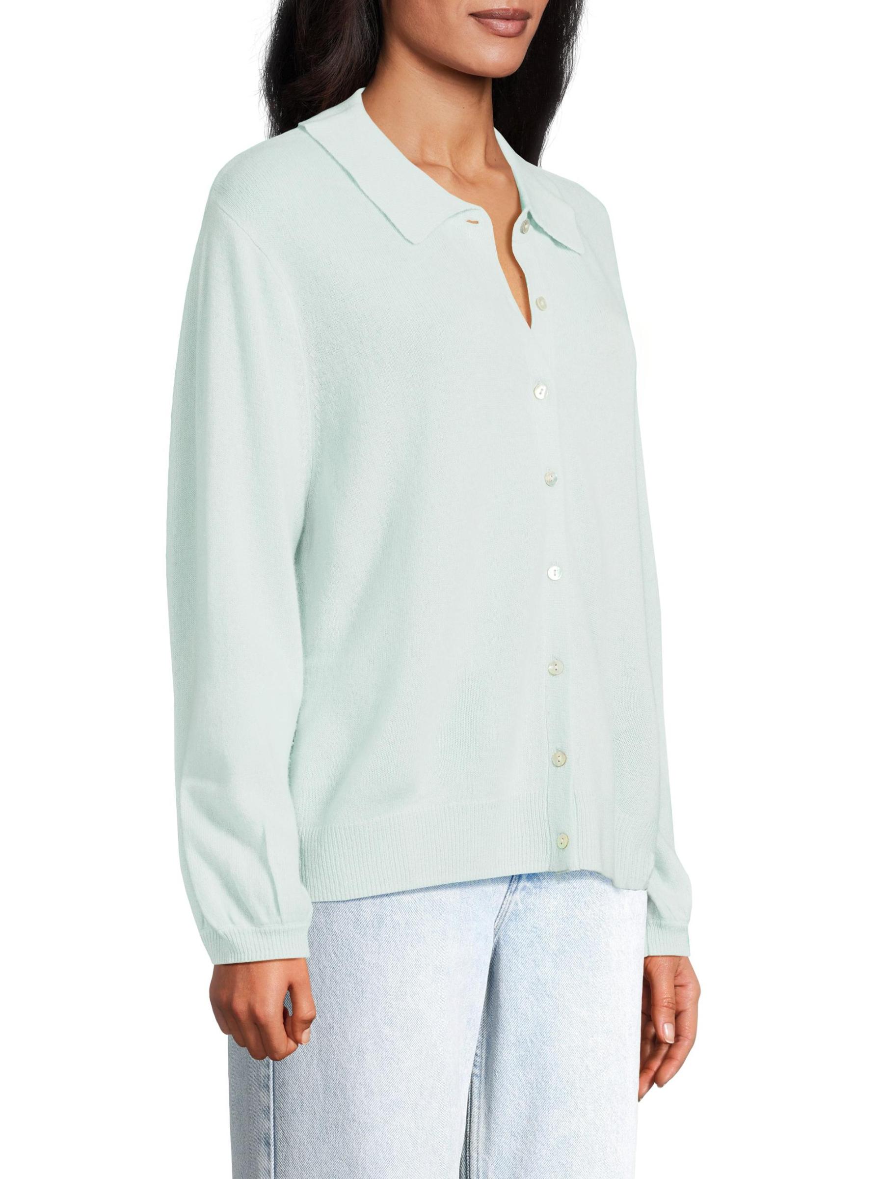 Crafted of soft cashmere, COLORUSH's slim-fit cardigan features a spread collar, rib-knit trim, and button-front closure.