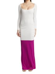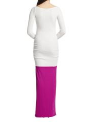 Los Angeles-based IZAYLA has captured the middle road between timeless silhouettes and contemporary fanfare. This collection represents the empowerment of women’s fashions, featuring signature fabrics and classic, conservative cuts. Styled with a circular scoopneck, this vibrant two-tone dress is finished with ruched detailing at the sides.Scoopneck Long sleeves Pullover style 90% polyamide/10% spandex Dry clean Made in USA
