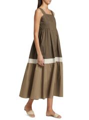 From the Sartorial Rawness Collection. This midi-dress from Barneys New York features a colorblocked design and pleated single-tiered skirt. Wide straps and a comfortable smocked back finish the look.Square neck Sleeveless Side seam pockets Side zip closure Cotton 70% cotton/30% polyester Hand wash Made in Japan