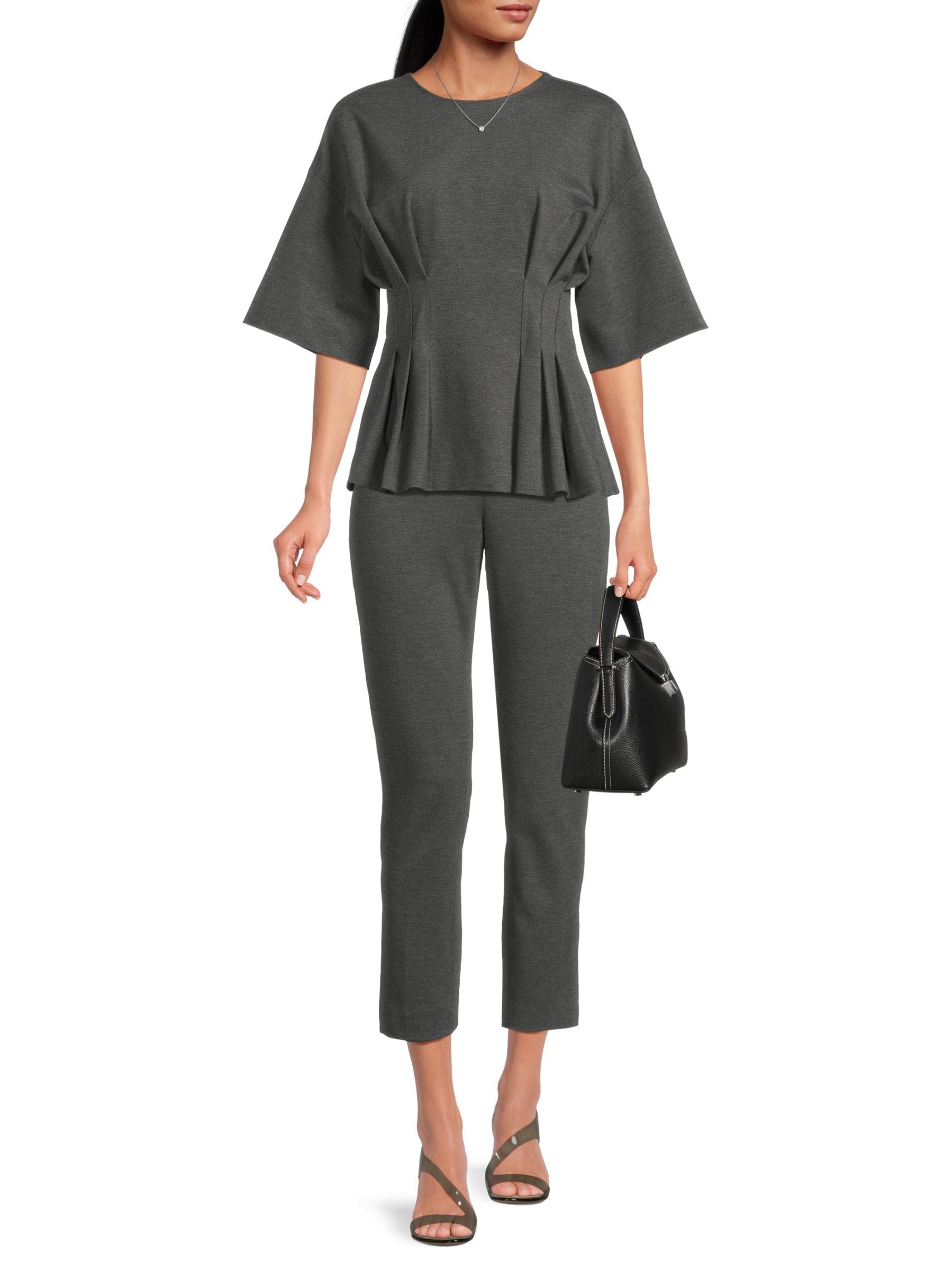 Elevate Natori's compact knit pull-on pants offer a comfortable elasticized waist and sleek straight legs.
