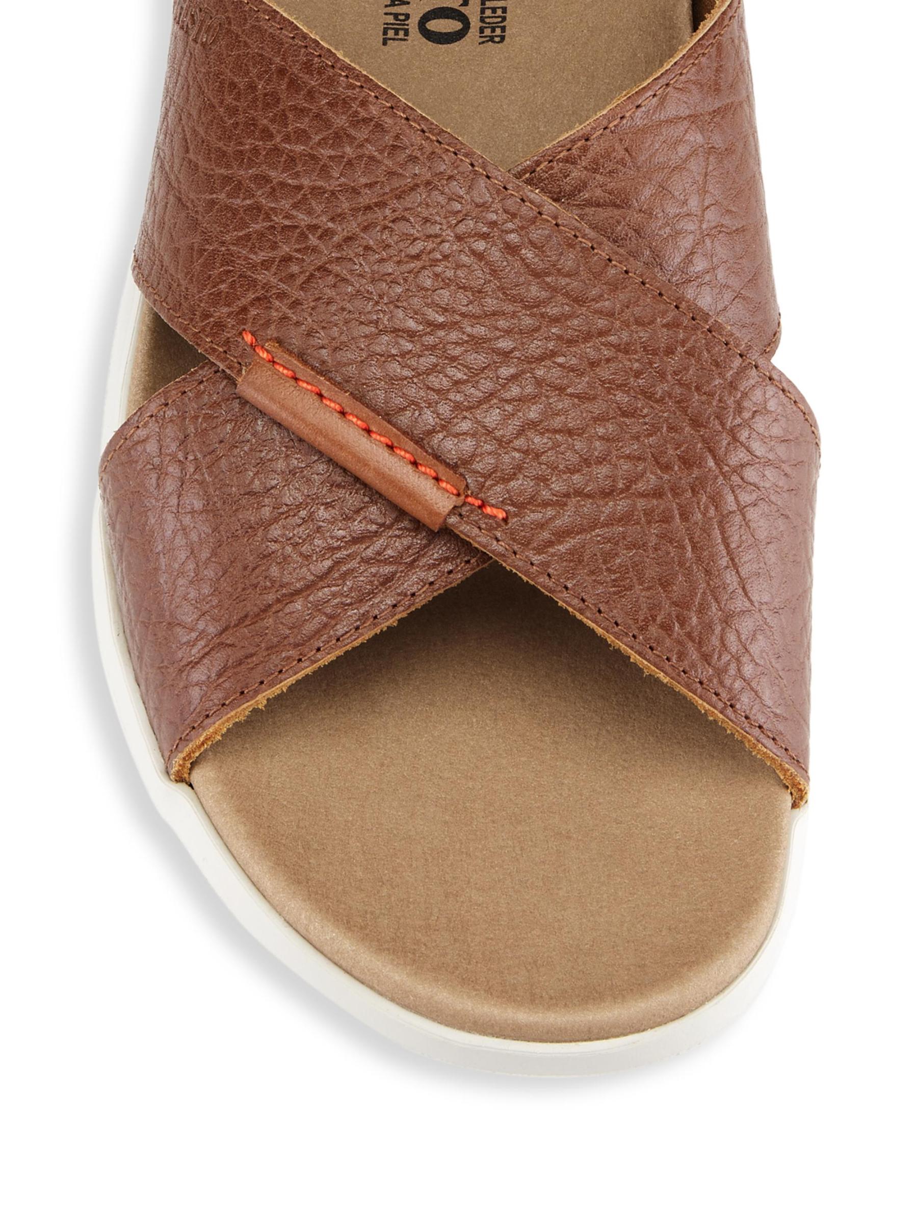 Hand-stitched of soft-grained leather, Mephisto's lightweight Conrad sandals flaunt chic crossover straps.Leather upper Open toe Slip on style Leather trim Synthetic sole Made in Portugal