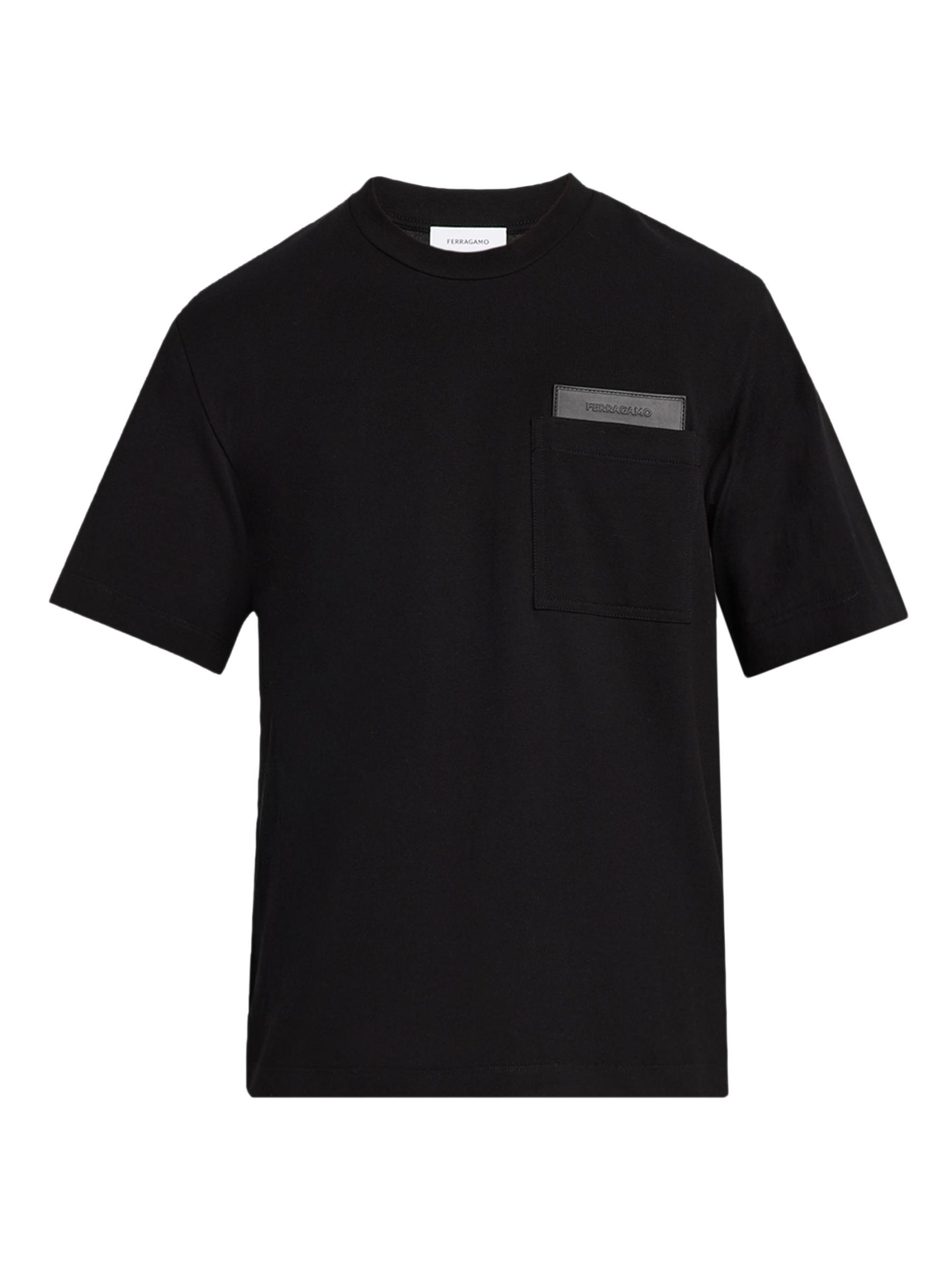 Designed with an embossed leather logo patch at the chest, this crewneck T-shirt from FERRAGAMO is crafted of soft cotton jersey.Crewneck Short sleeves Pulls over Cotton Trim: Leather Lining: Cotton/elastane Dry clean Made in Italy