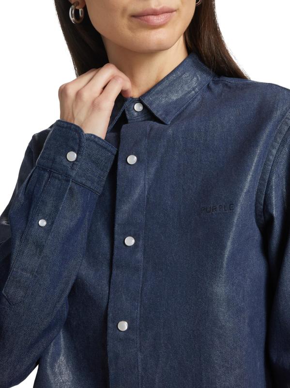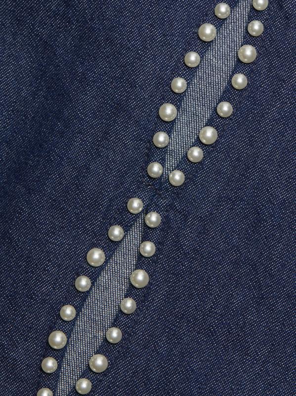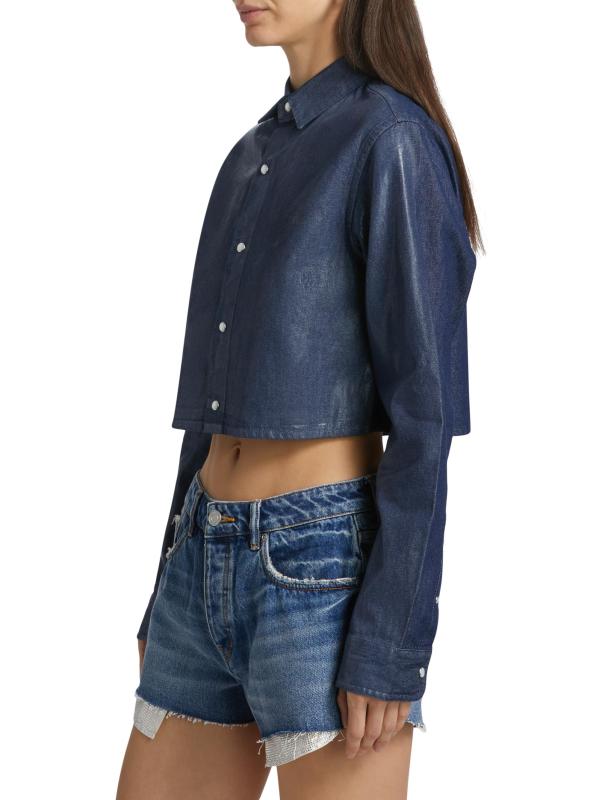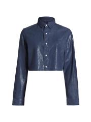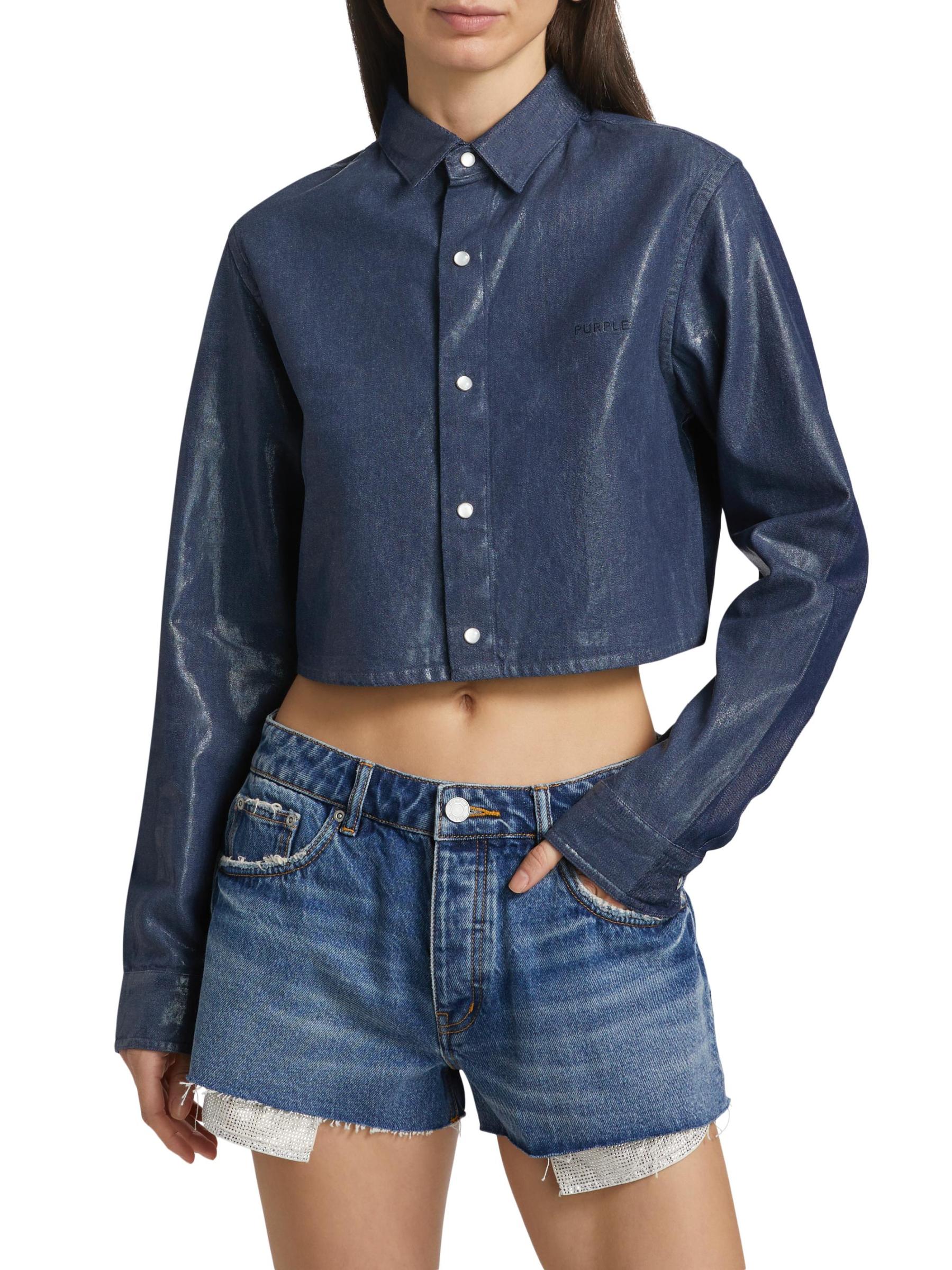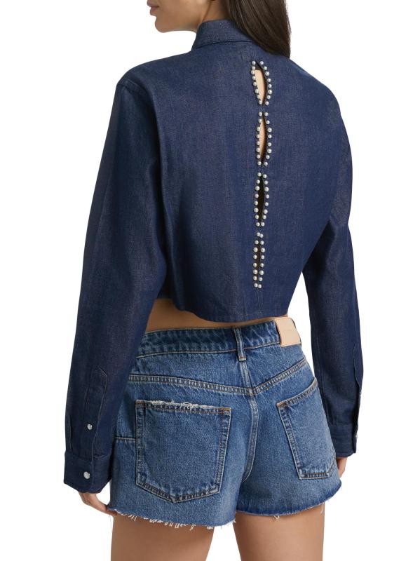 Crafted of cotton, this crop top from Purple Brand is styled with pearl-embellished cut outs at the back.Point collar Long sleeves button cuffs Back cut outs Button front closure 100% Cotton Machine wash Imported