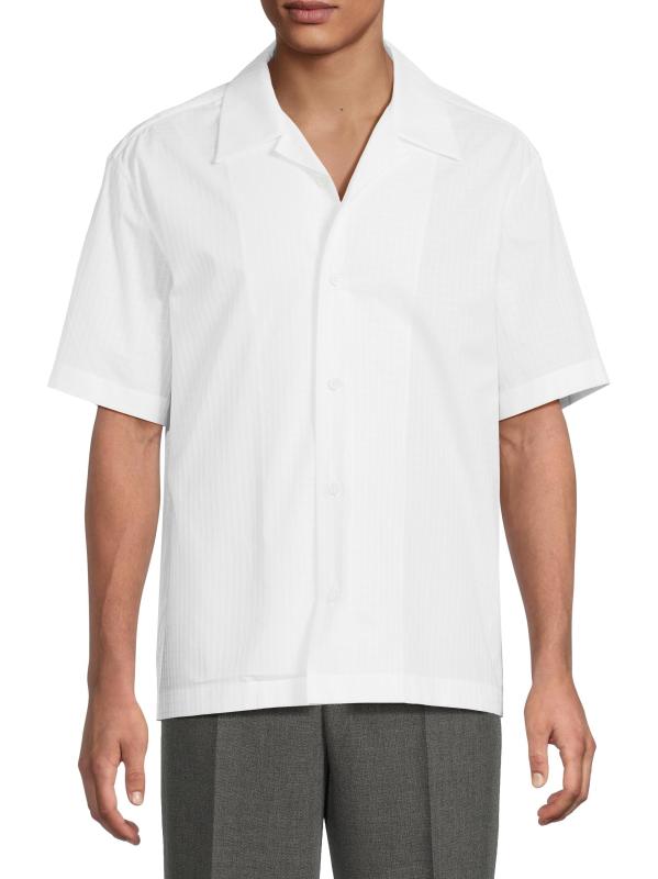 This Jil Sander shirt is crafted of cotton poplin and cut for a regular fit. A camp collar, short sleeves, and a button-front placket lend laid-back structure to this style.