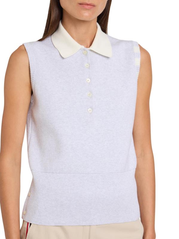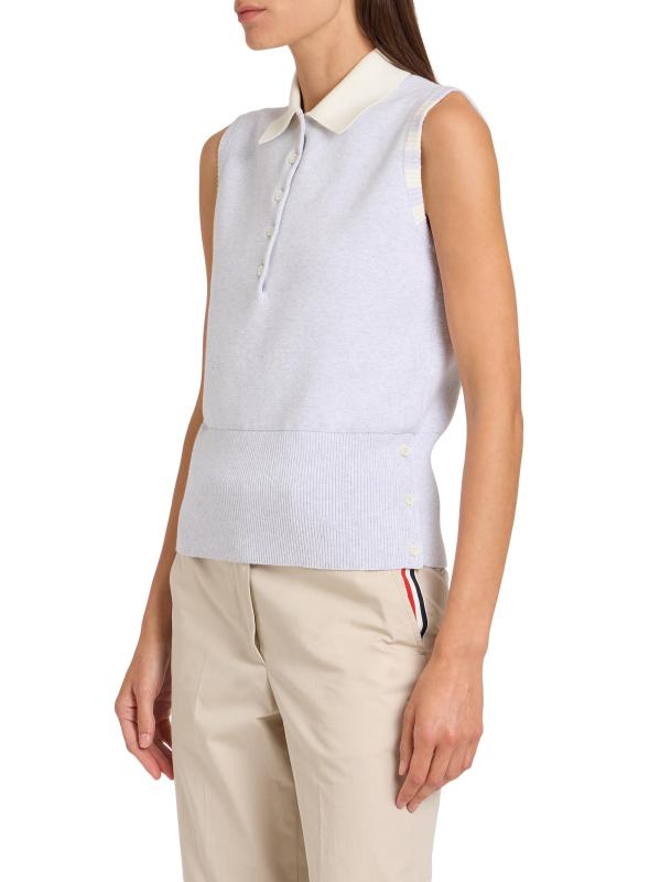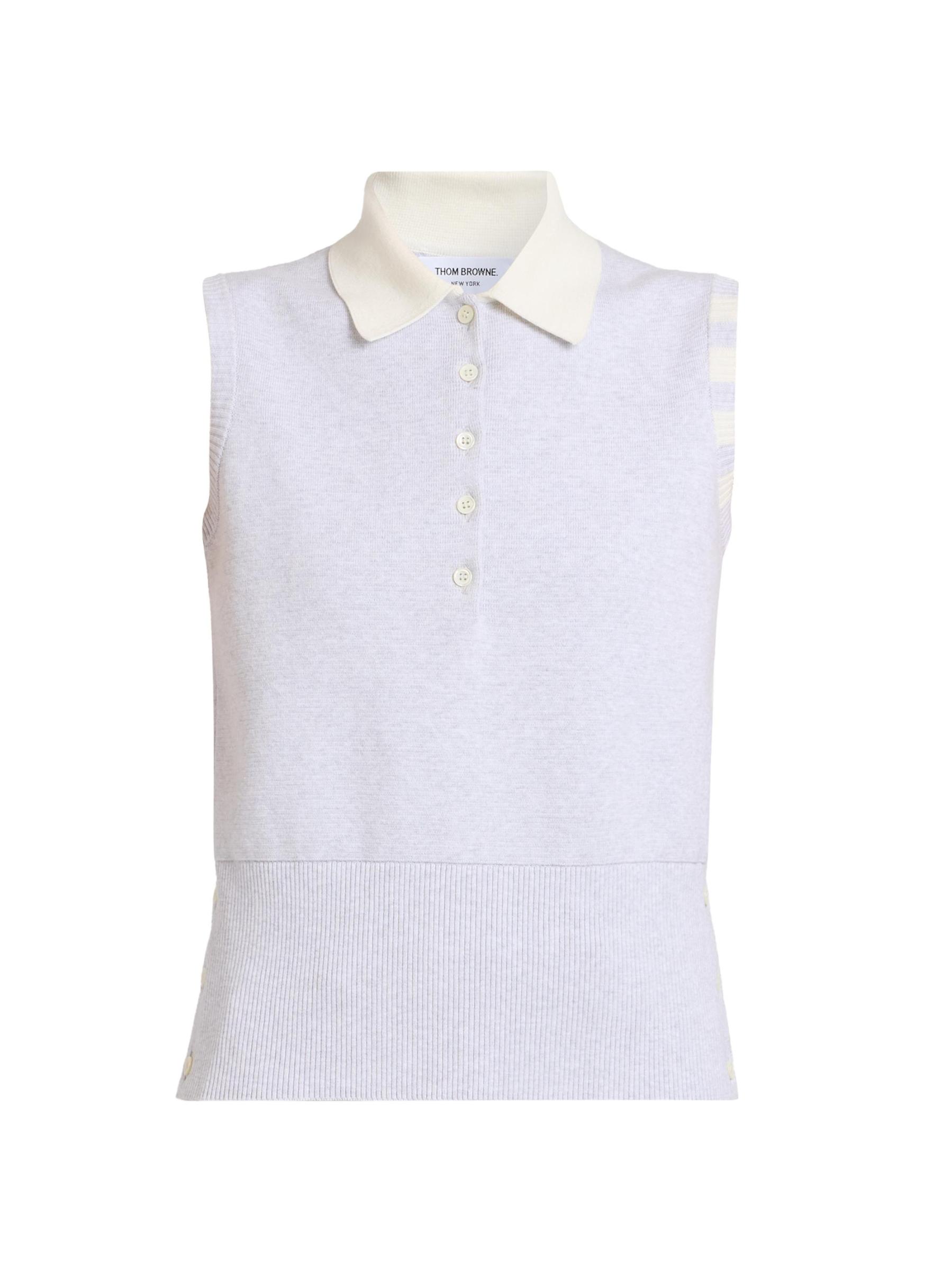 Made in Italy of cotton, this Thom Browne polo shirt is cut in a sleeveless silhouette.Spread collar Sleeveless Button front closure 100% Cotton Dry clean Made in Italy