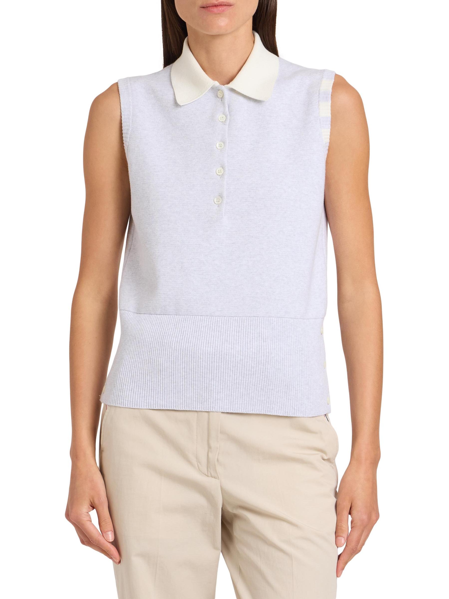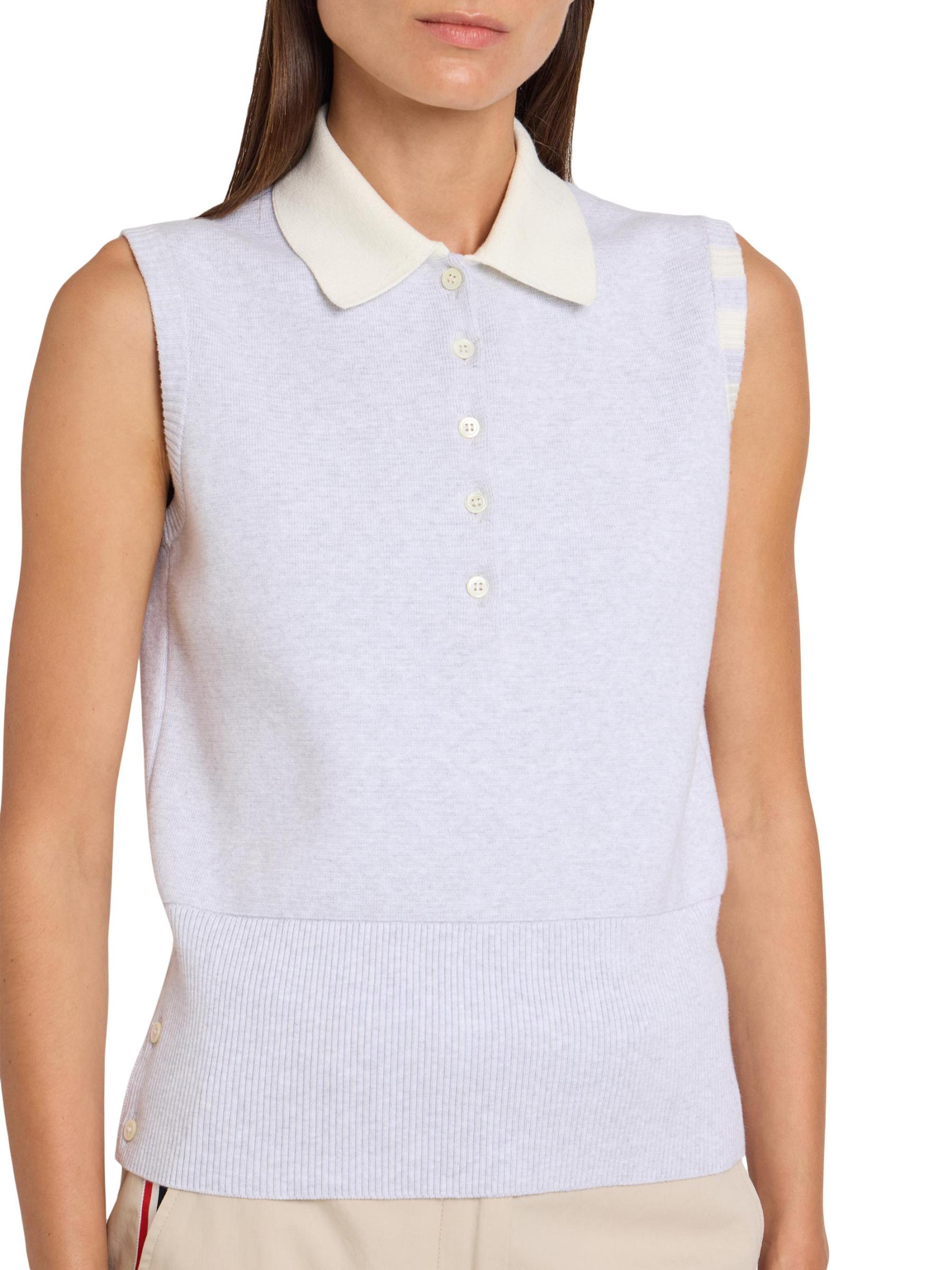 Made in Italy of cotton, this Thom Browne polo shirt is cut in a sleeveless silhouette.