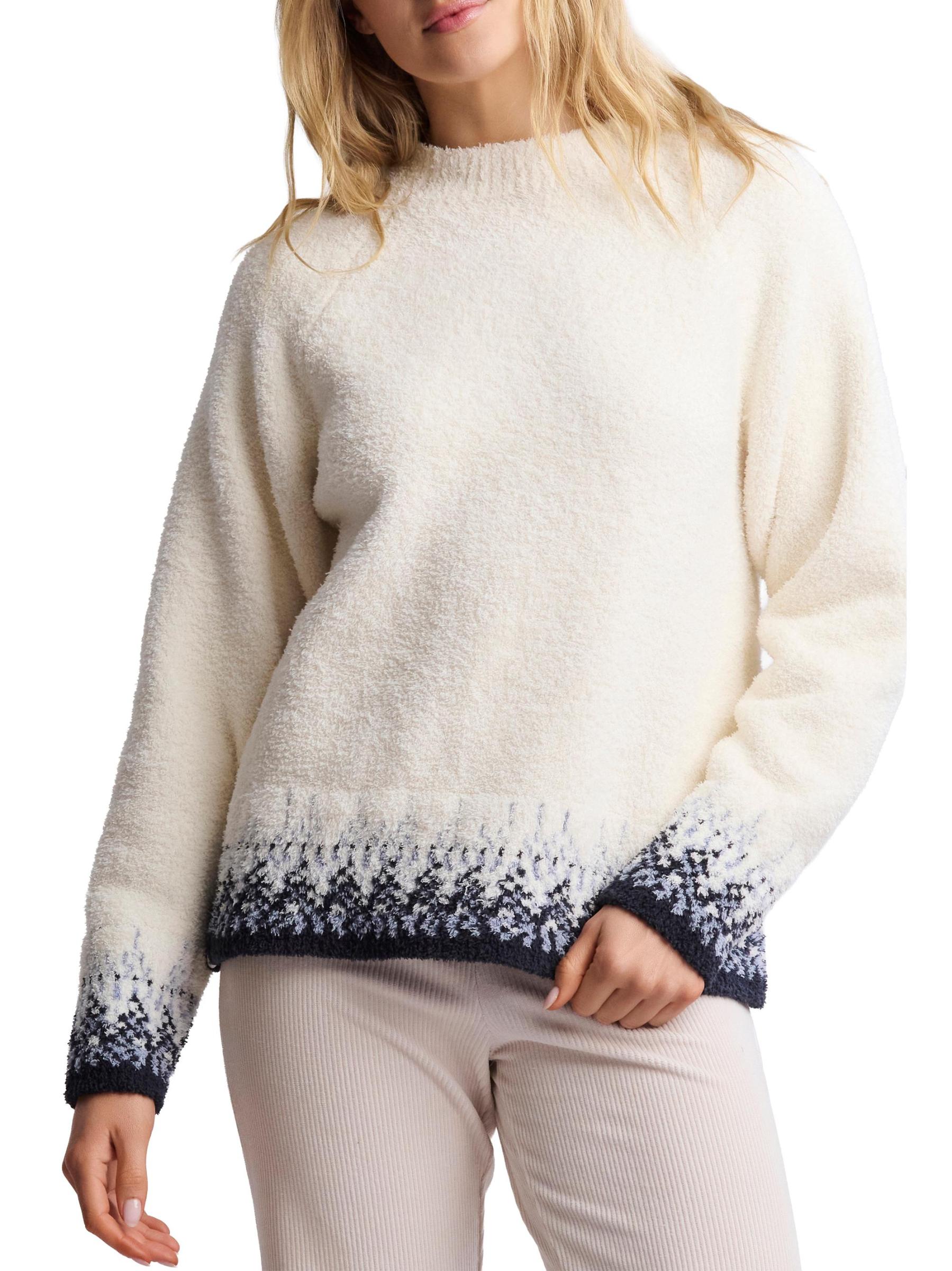 This CozyChic® sweater from Barefoot Dreams is crafted of a soft knit and features raglan sleeves and confetti pattern cuffs.