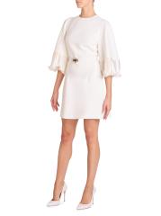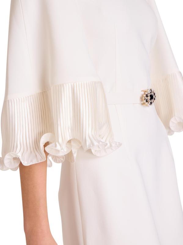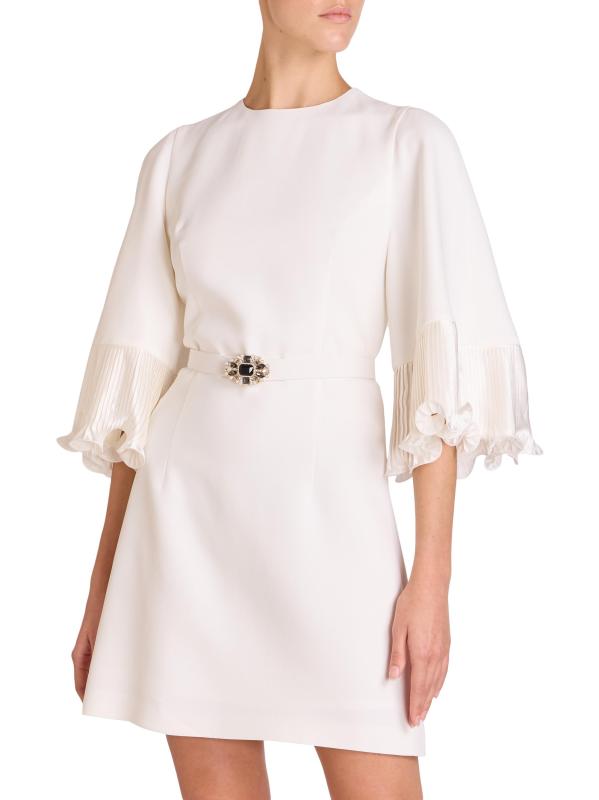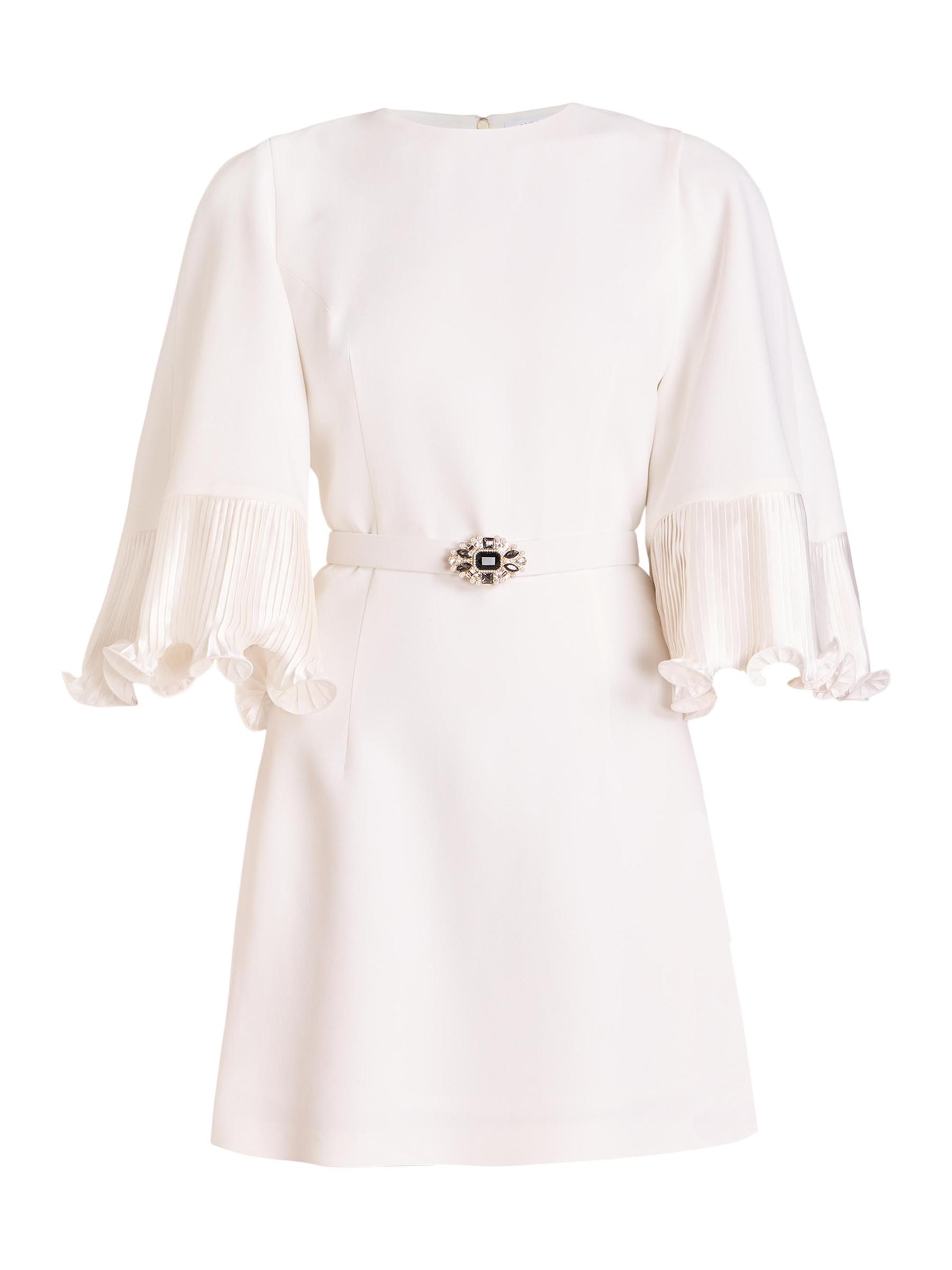 ANDREW GN's charming crepe dress is cinched with a tonal belt accented by an embellished buckle. Framed by elbow-length sleeves, this piece ids finished with frilled cuffs.