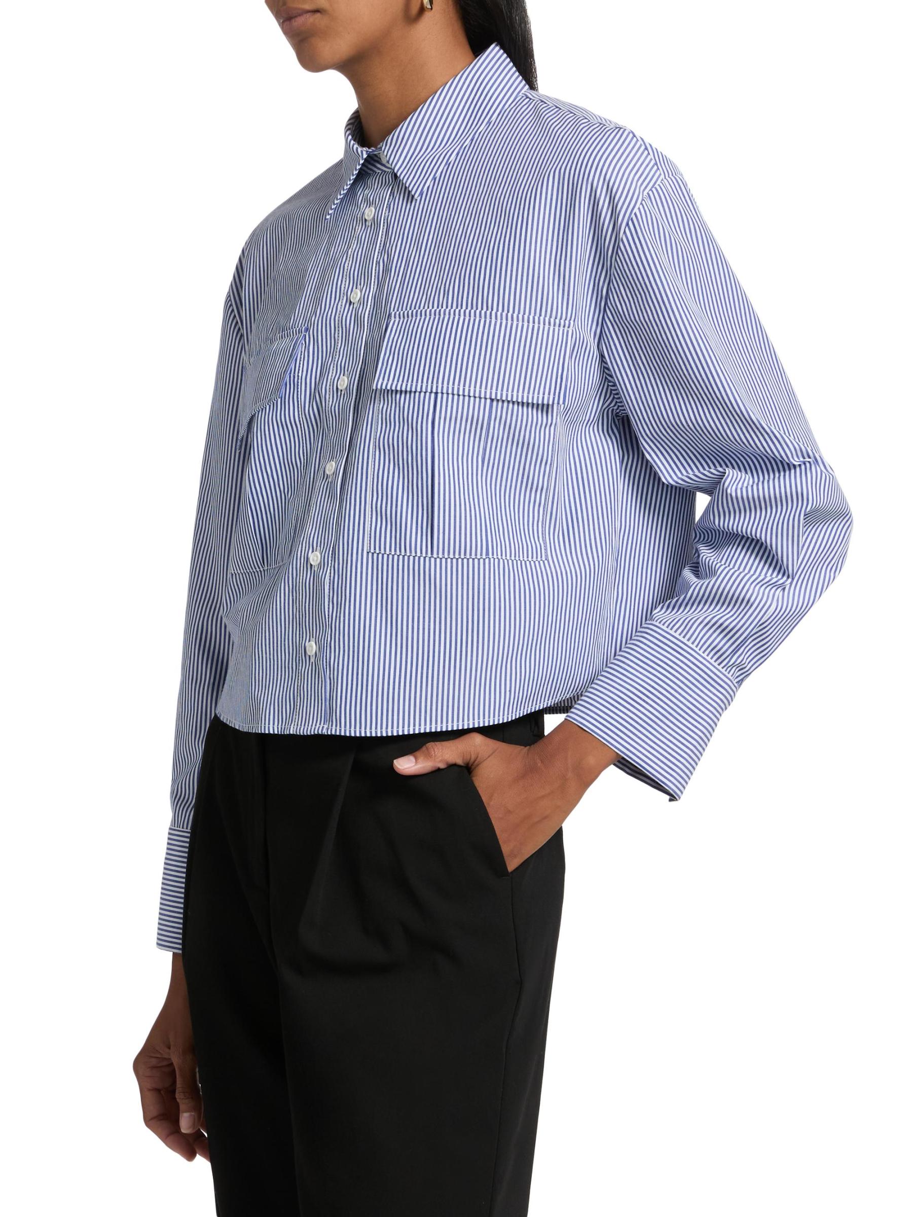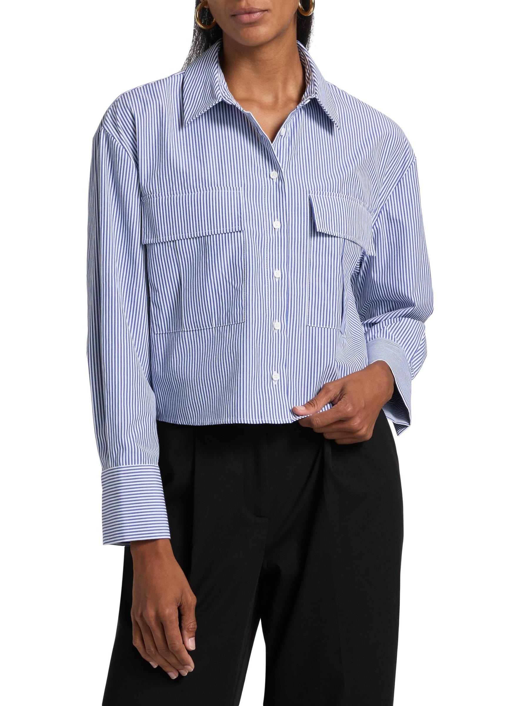 Cut in a cropped silhouette, Only Studio's striped shirt blouse is crafted of a stretch nylon-cotton blend. Chest flap pockets complete the look.