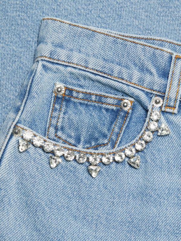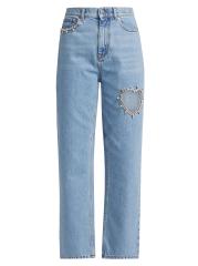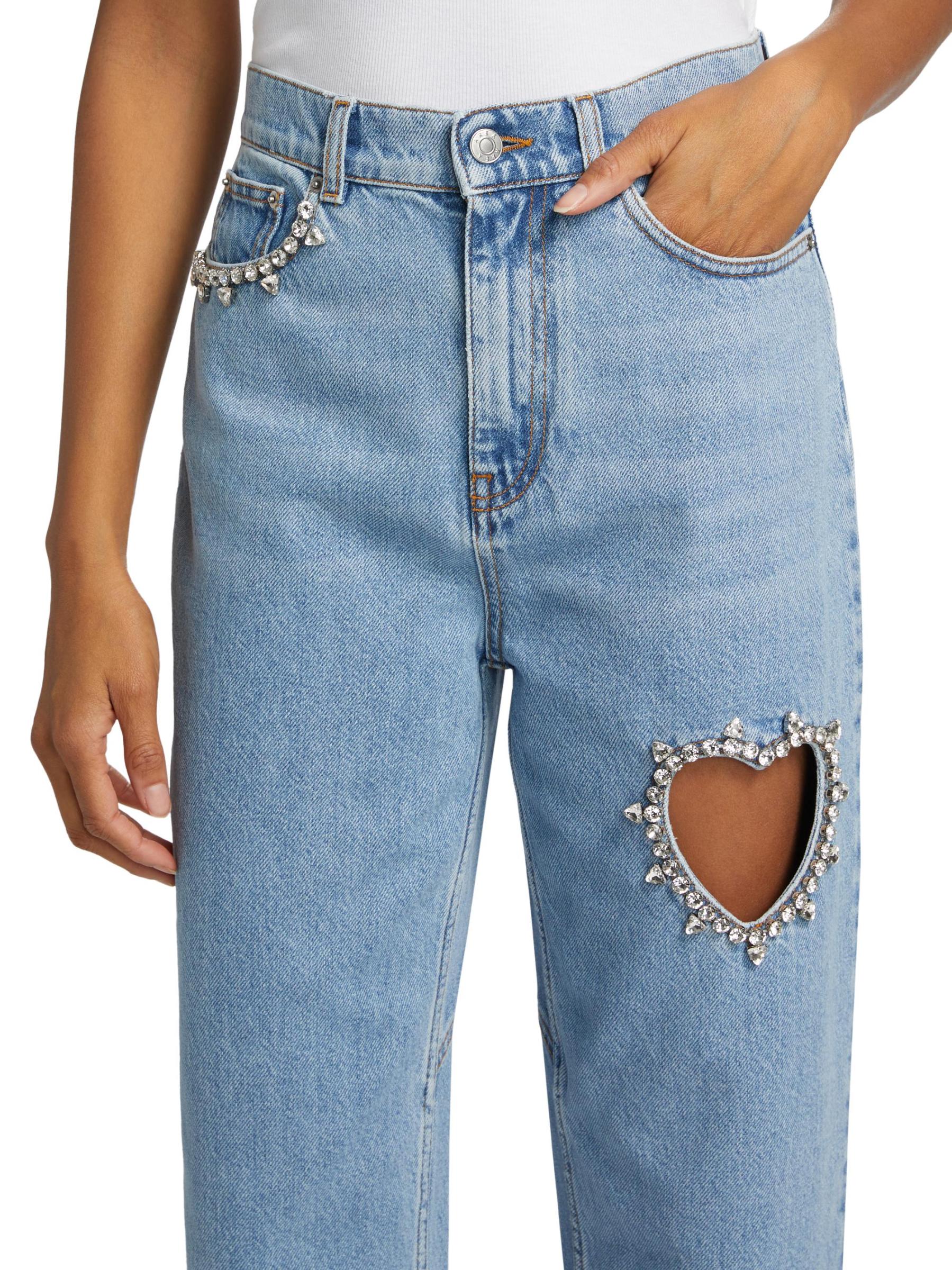 Crafted of Italian pure cotton denim, Area's Crystal Heart jeans showcase an embellished heart cutout, trimmed pocket, and heart-shaped seam at the rear. This straight-leg piece features a mid-rise and relaxed silhouette.Five-pocket style Zip fly, button closure 100% Cotton Dry clean Made in Italy