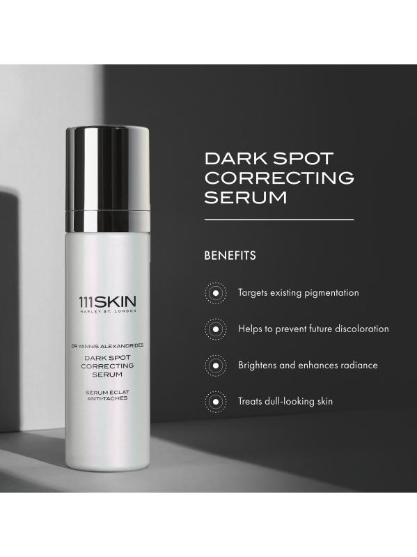 dark spots and dull-looking skin. Inspired by in-clinic treatments at 111 Harley Street, the Dark Spot Correcting Serum is our most advanced correcting treatment to date, targeting even the most persistent pigmentation while evening skin tone. 1 oz. Made in Switzerland.