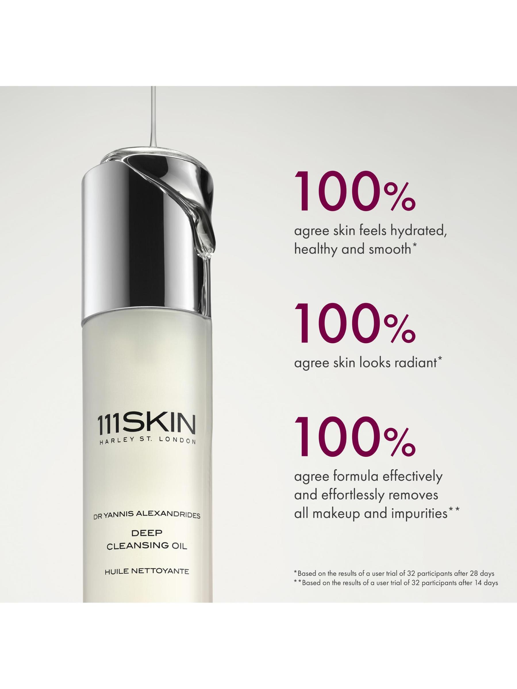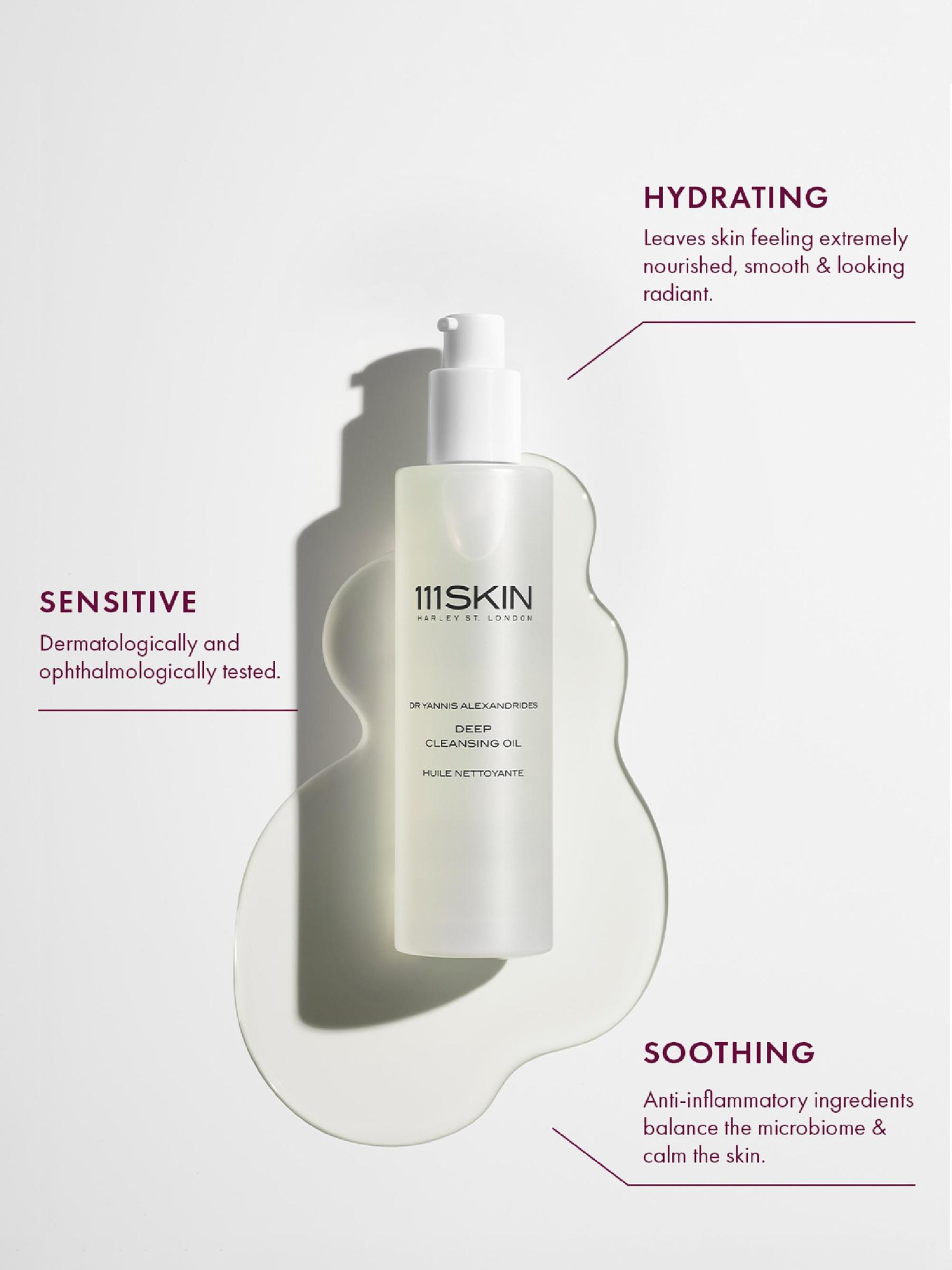 The Deep Cleansing Oil from 111SKIN is a lightweight, gentle, cleansing oil developed by Dr Yannis Alexandrides for deeply hydrated and softer skin. The precisely formulated blend of essential plant oils emulsifies into a light milk to gently melt away dirt, makeup, and impurities. Ceramides, CICA, prebiotics, and a signature NAC Y2™ ingredient complex provide deep nourishment and restore balance to the skin barrier while calming signs of irritation. 3.4 oz.