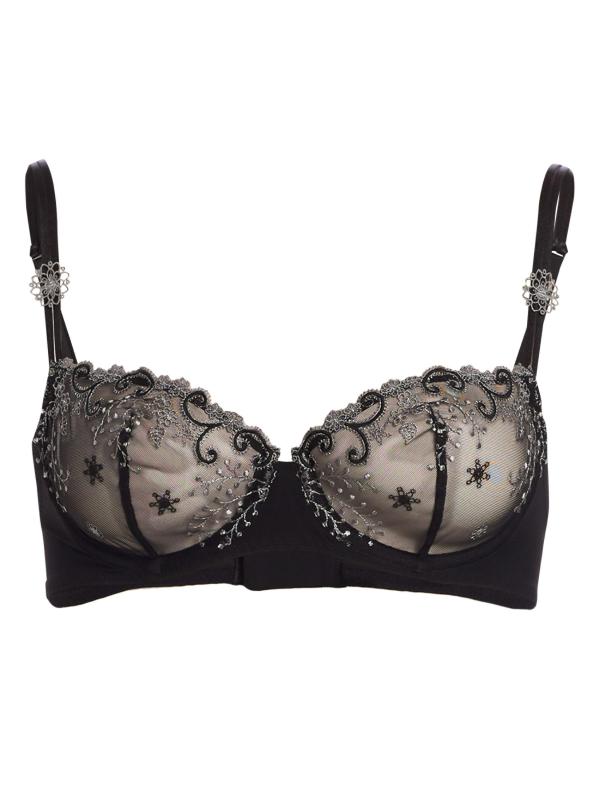 This seductive demi bra is decorated with exquisite embroidered floral accents for a romantic, feminine look.Adjustable wide-set straps for a flattering decolletage Reinforced cups with light stretch Underwire Comfortable microfiber underband Back hook-and-eye closure Exceptional support up to F cup Nylon/elastane/polyester Hand wash Imported