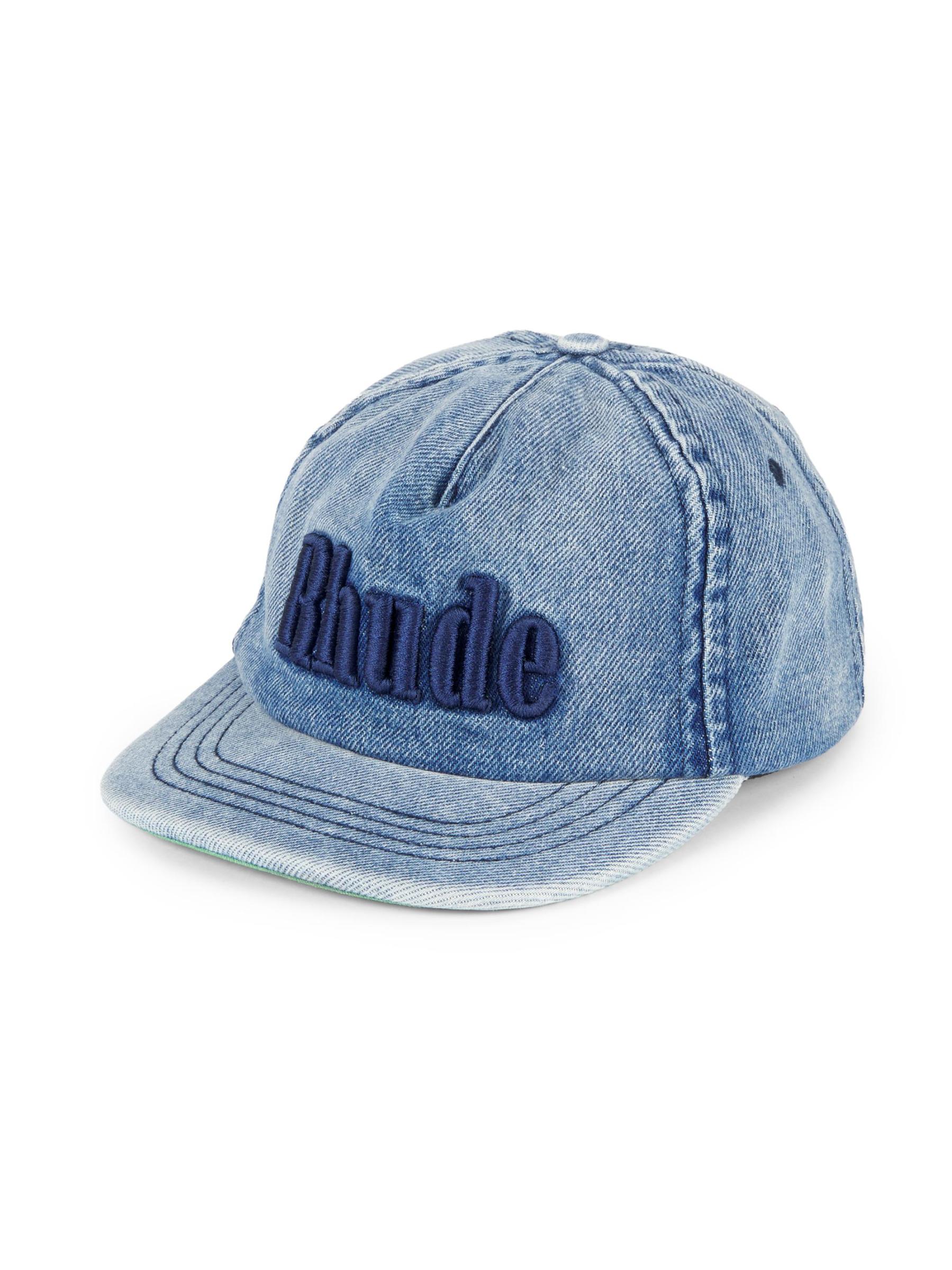 Crafted of washed cotton denim, this baseball cap from Rhude is styled with a 3D embroidered logo on the front.