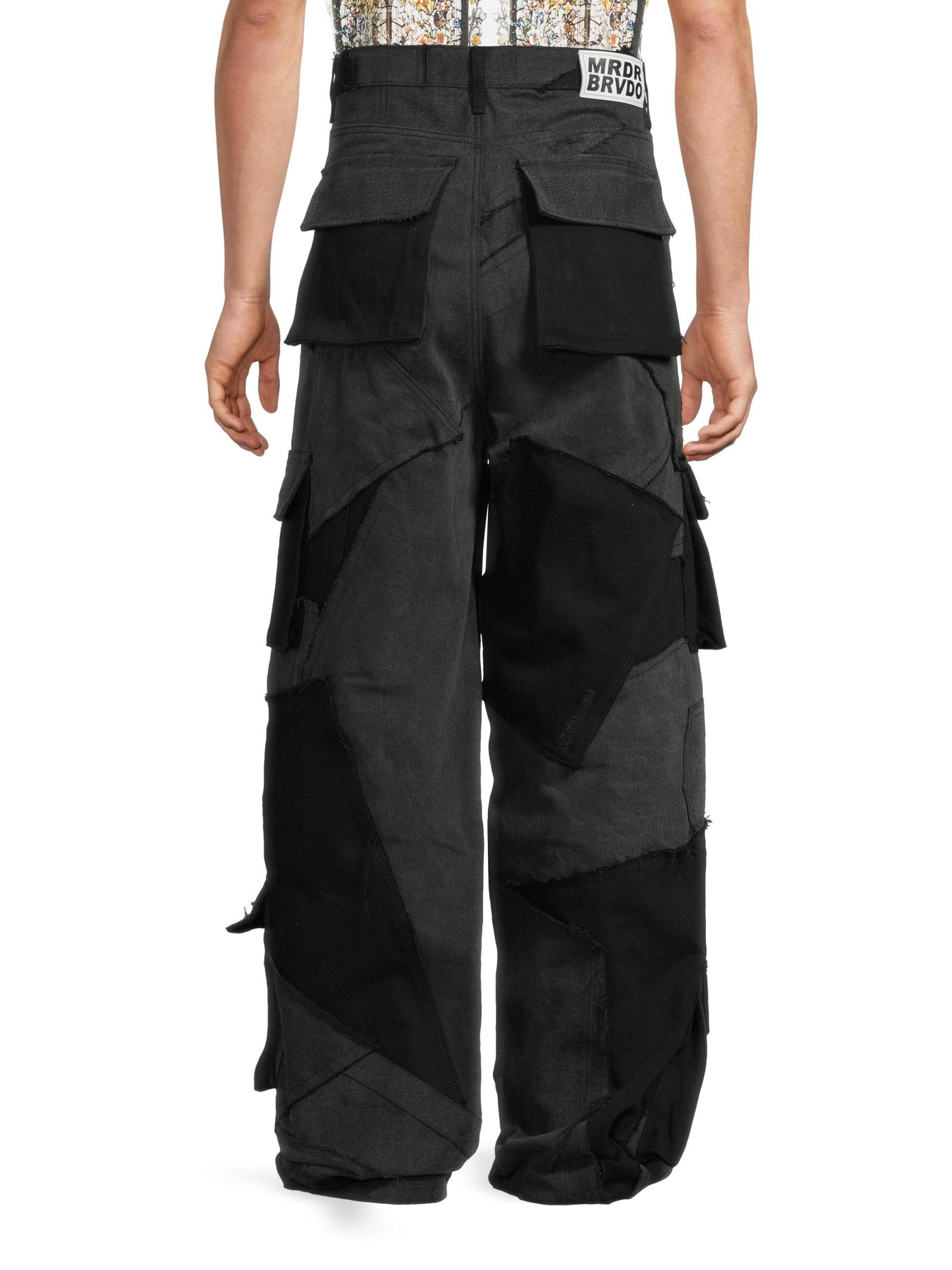 Crafted of durable cotton, Who Decides War's Destroyed Paneled Cargo jeans patch together pieces of denim with different hues and distressed threading. This slouchy silhouette features a classic five-pocket style, side flap pockets, and a wide-leg silhouette.Five-pocket style Side flap pockets Zip fly, button closure 100% Cotton Machine wash Imported