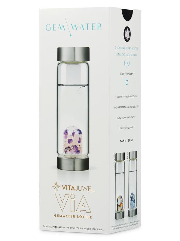 Gem-Water products by VitaJuwel naturally enliven everyday water in just 7 to 10 minutes. Each lead free, hand blown glass pod holds a blend of semi-precious gemstones with their own natural vibration creating what users describe as a smoother/softer mouth feel, making for a refreshing taste experience and improved hydration for the body.