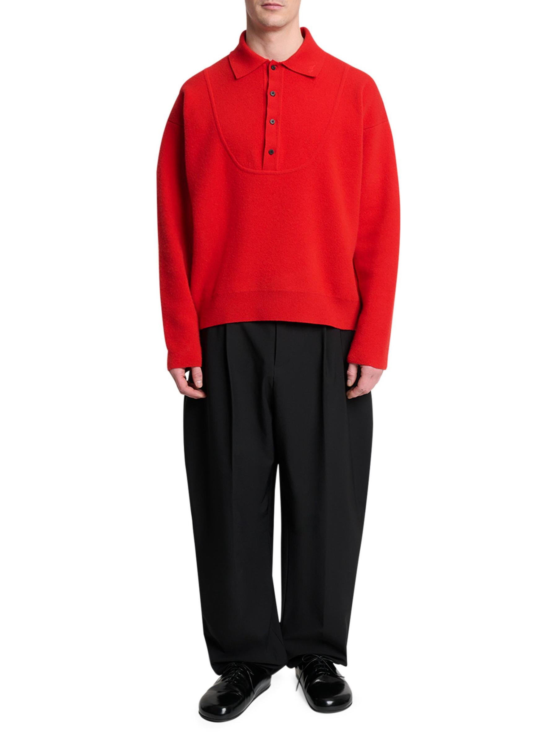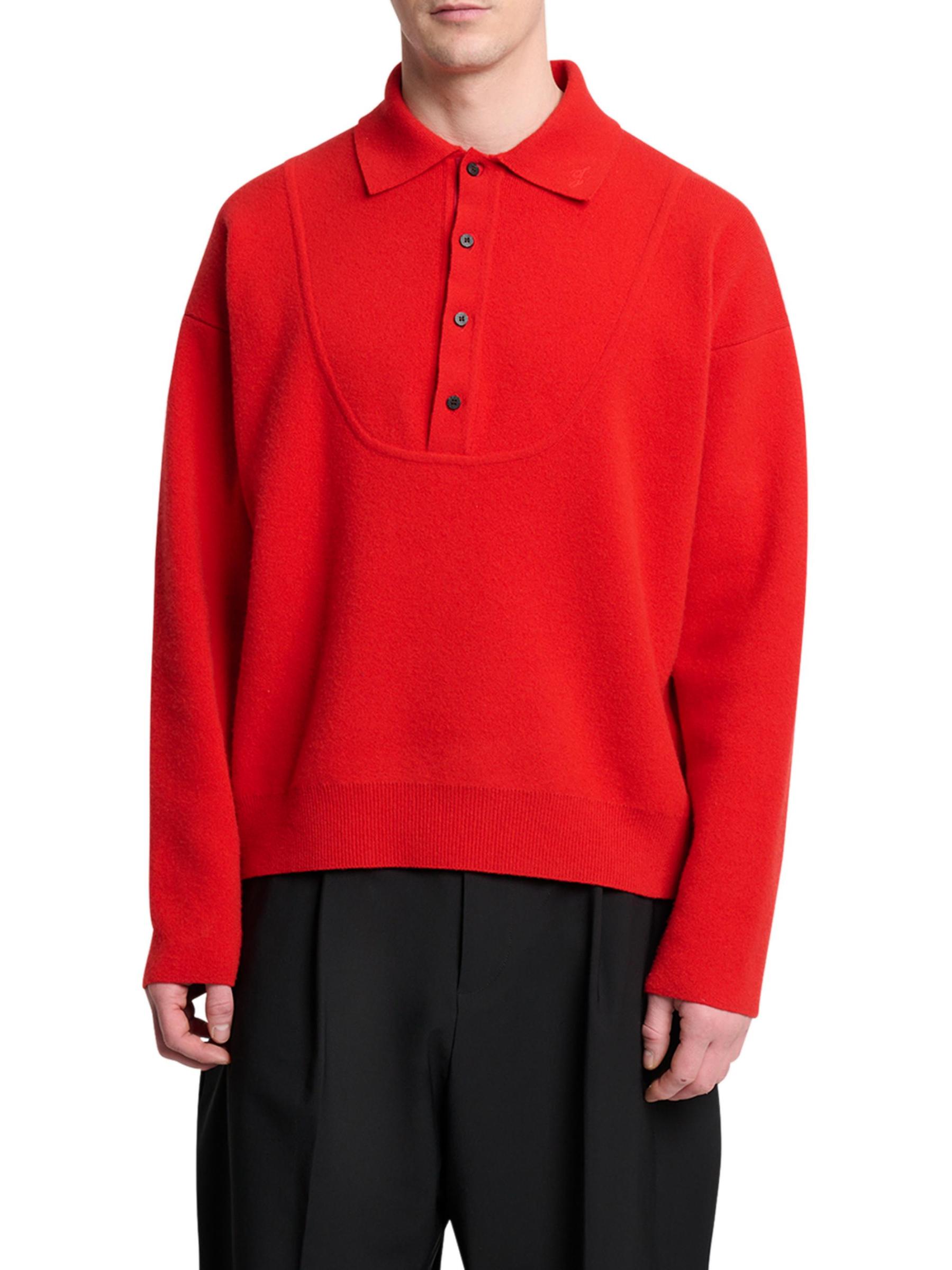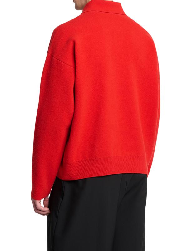The Doppio sweater from Jacquemus is knit with light structure from a wool blend in a polo-style silhouette with a seamed yoke.