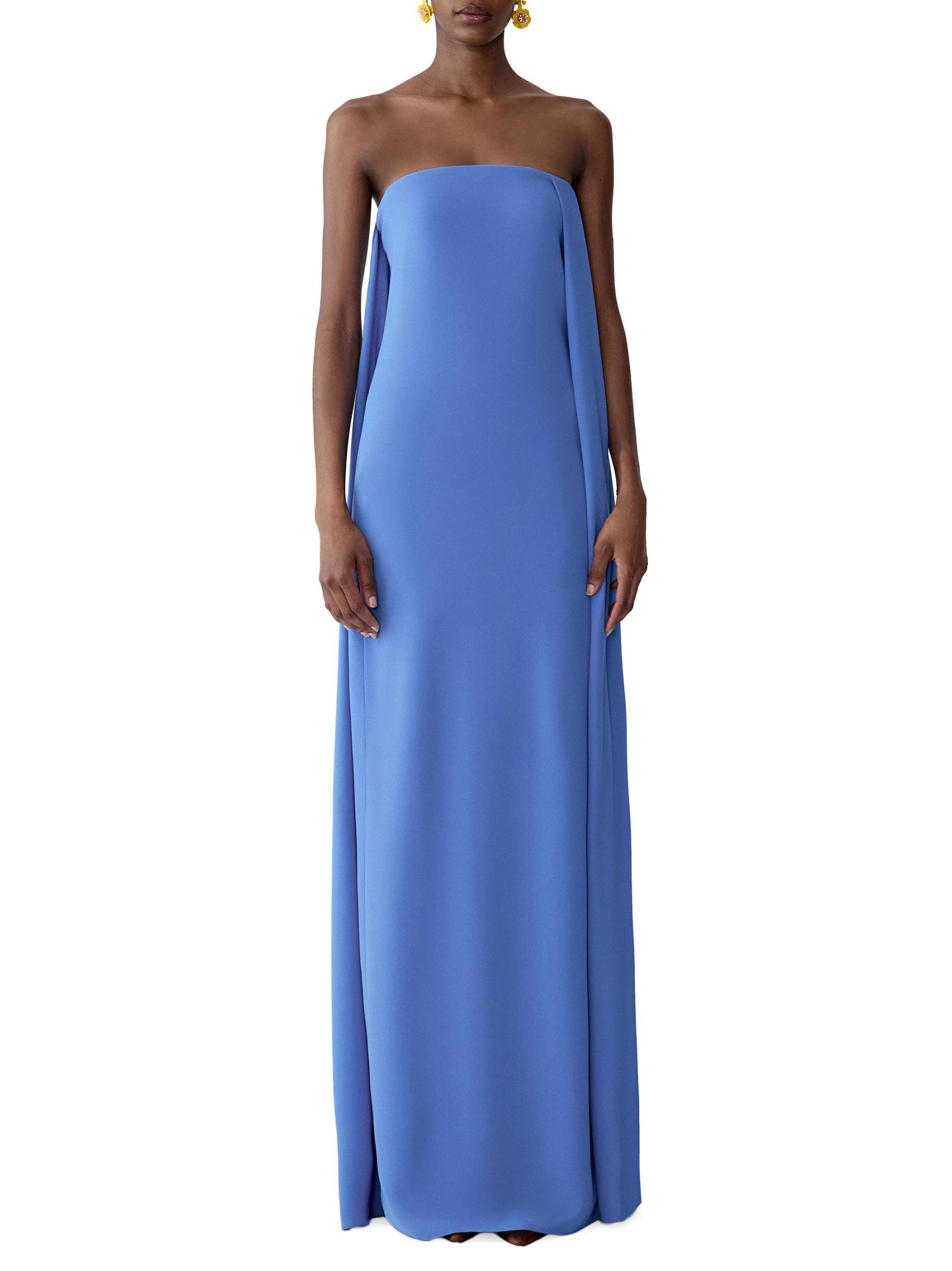 From the Resort Collection. This Carolina Herrera gown flaunts a draped, column silhouette. This piece is styled with a slit at the side.Strapless Side slit Back zip closure 100% polyester Dry clean Made in USA
