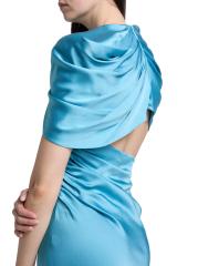 Draped Satin Cape-Sleeve Gown