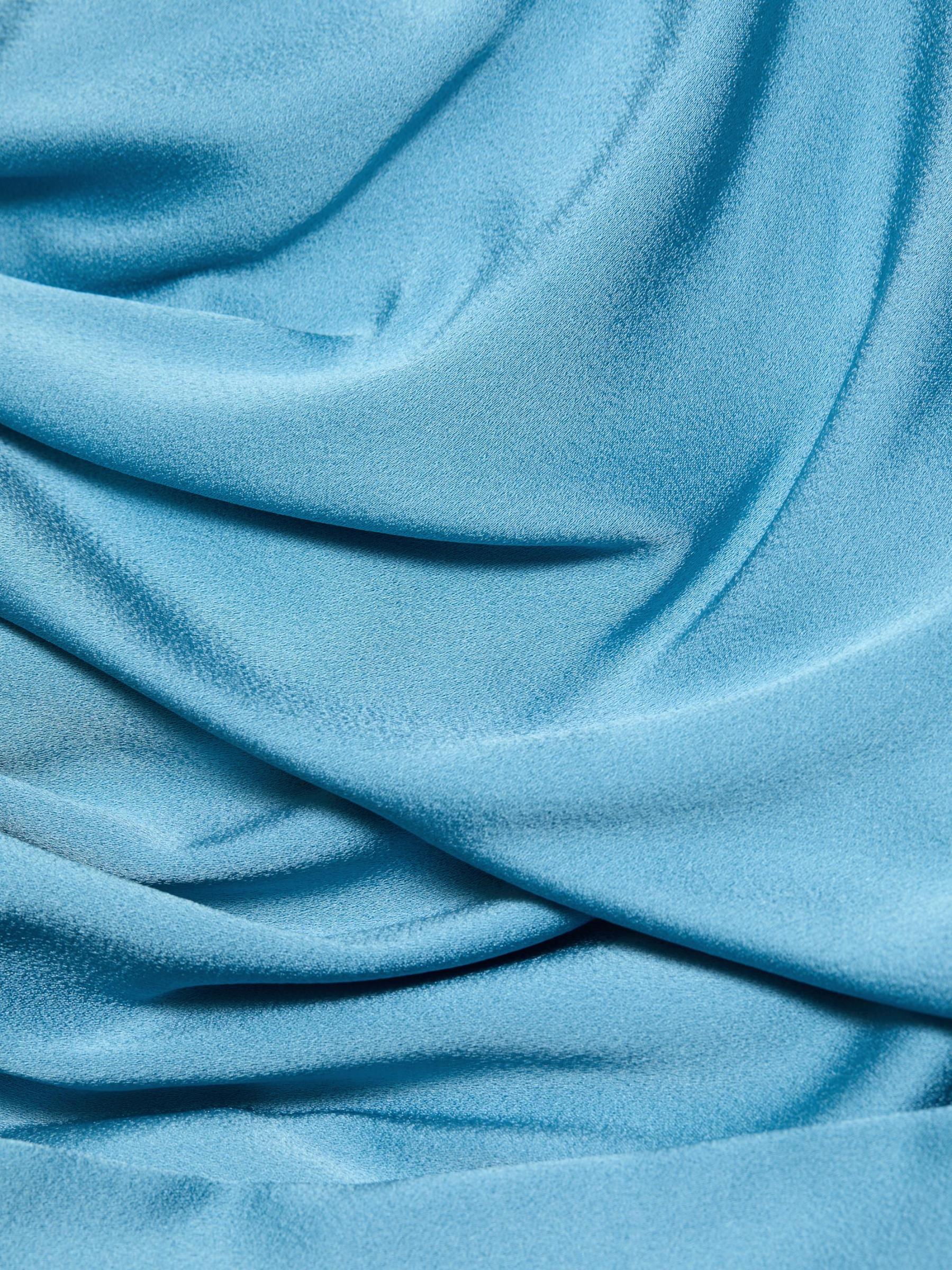 Crafted of satin, this Stella McCartney gown is designed with asymmetric draping at the shoulder, ruching through the waist, and short cape sleeves.