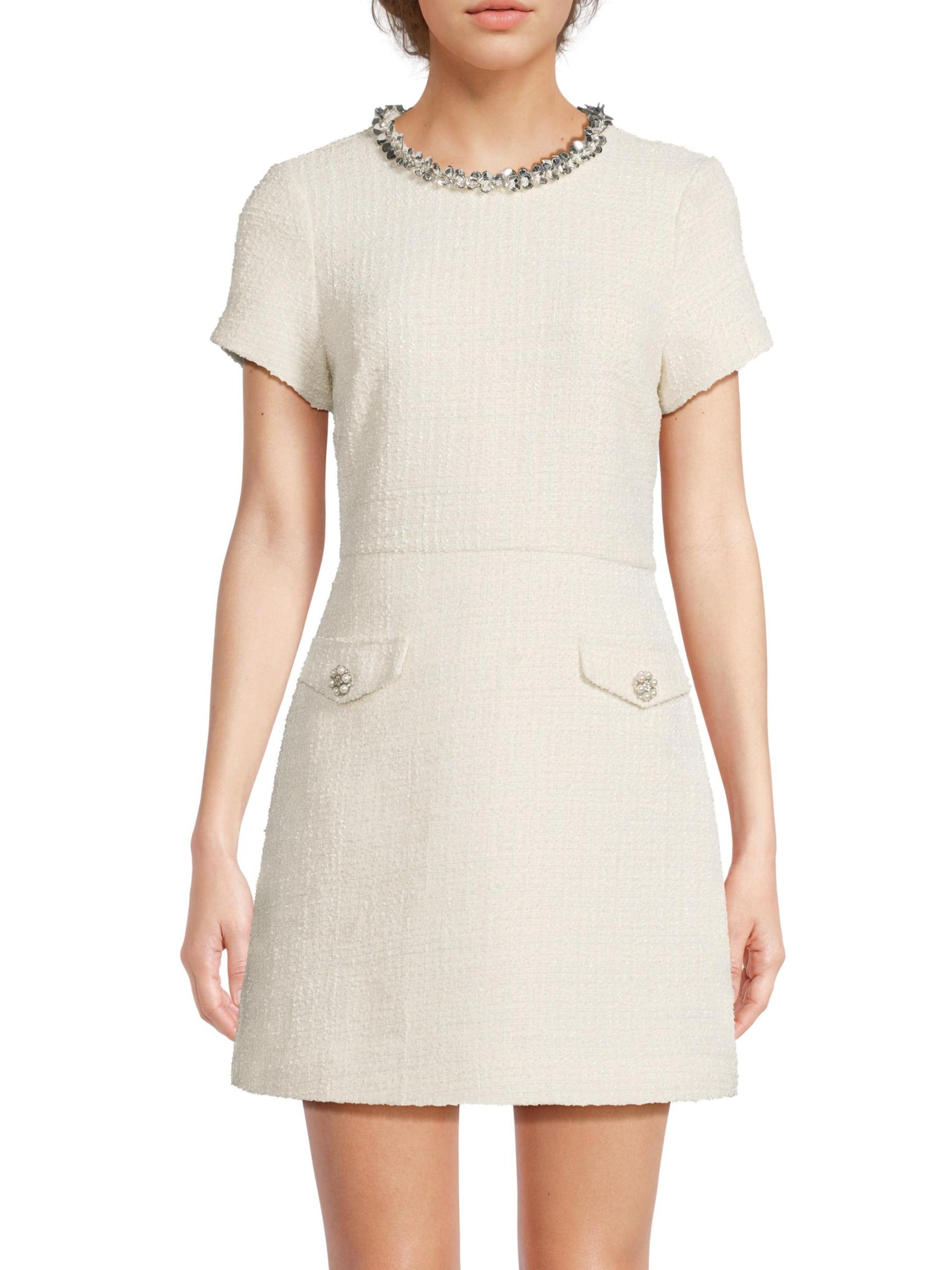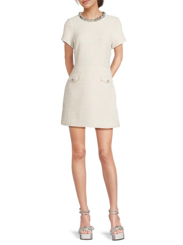Drop 11 Daria Embellished-Trim Tweed Minidress