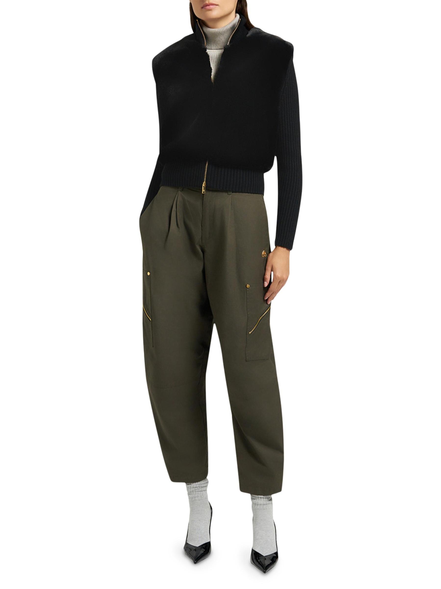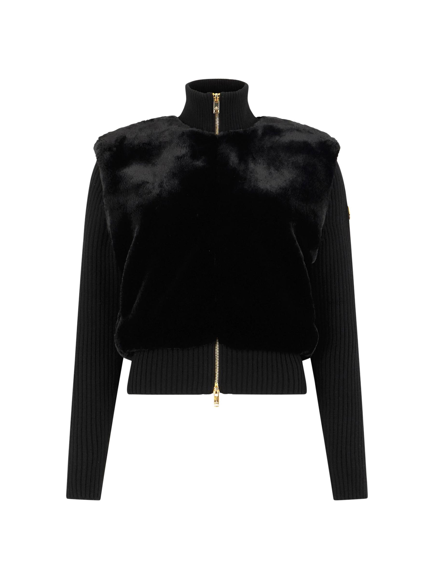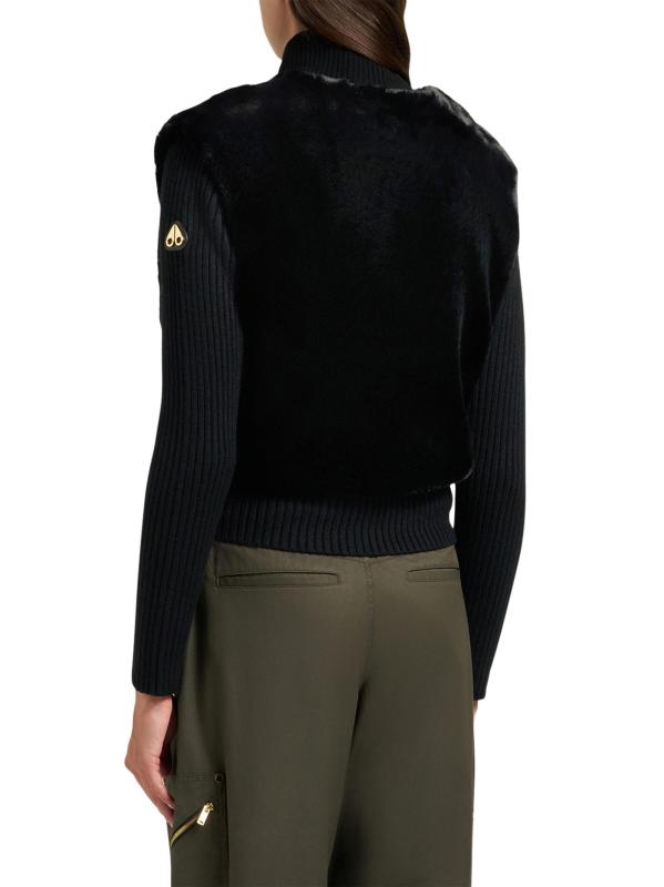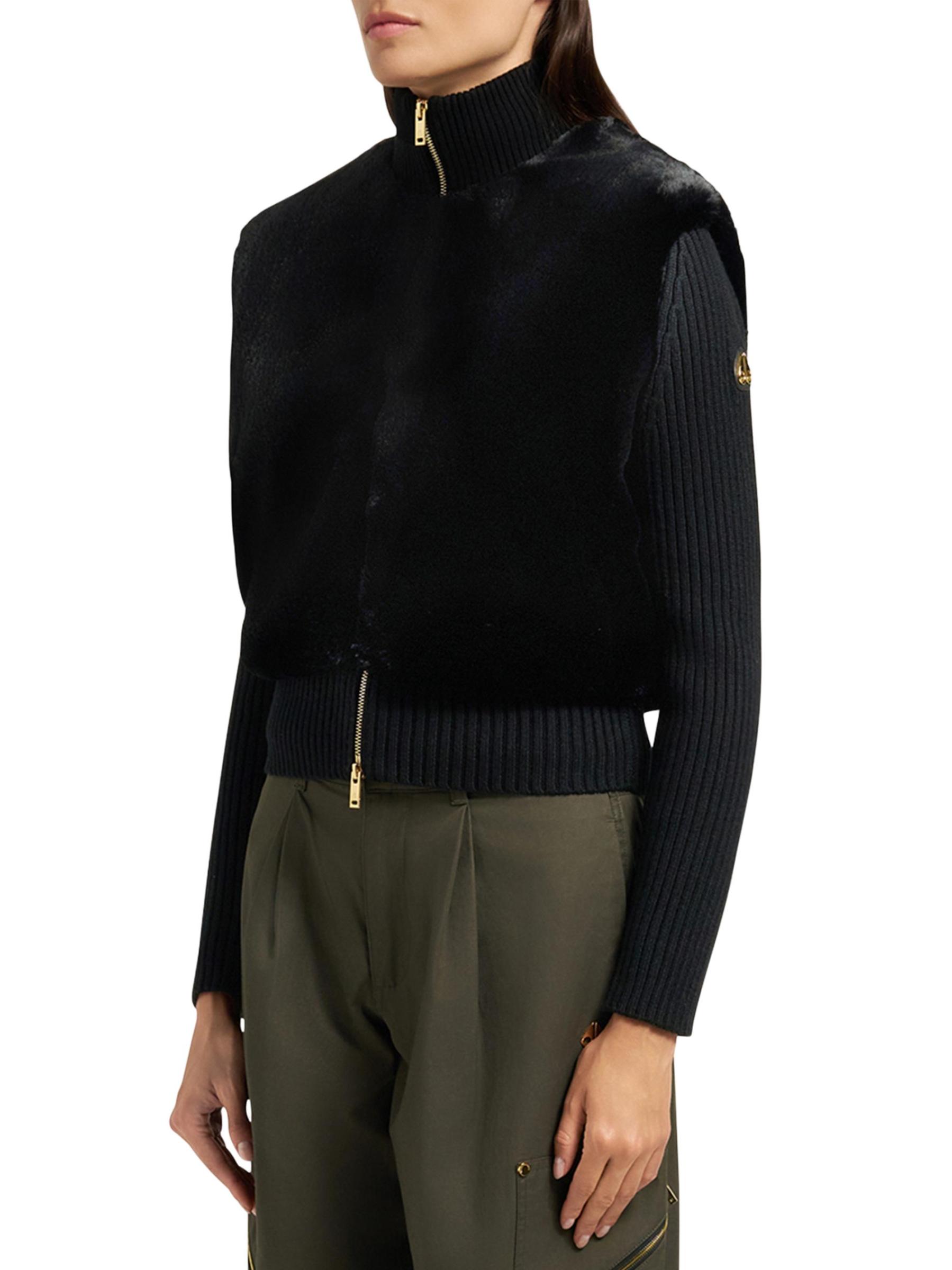 From the Gold Series Collection. Crafted of plush faux fur and fine merino wool, the Dua Bunny sweater from Moose Knuckles features a two-in-one silhouette with luxe goldtone hardware.