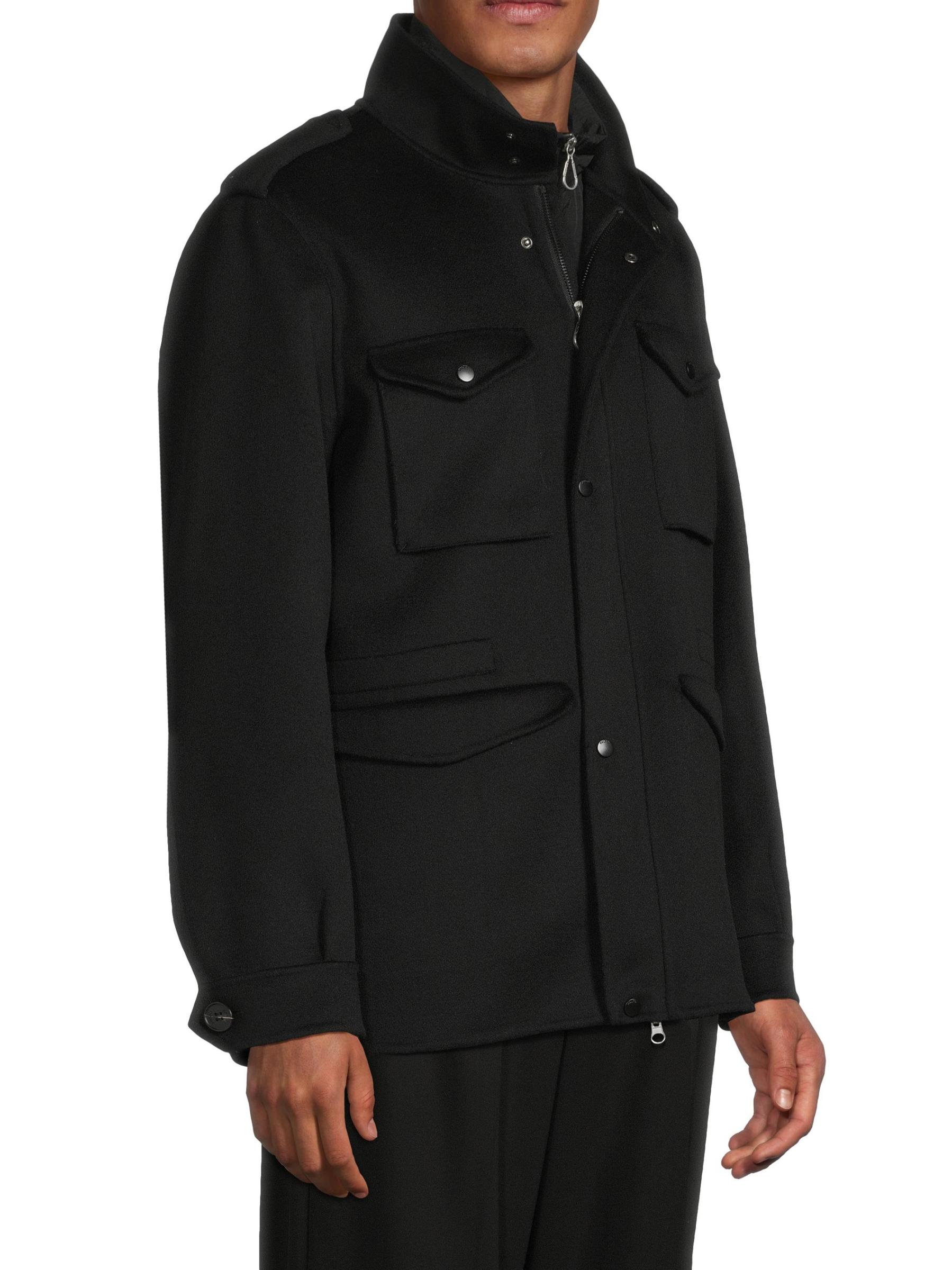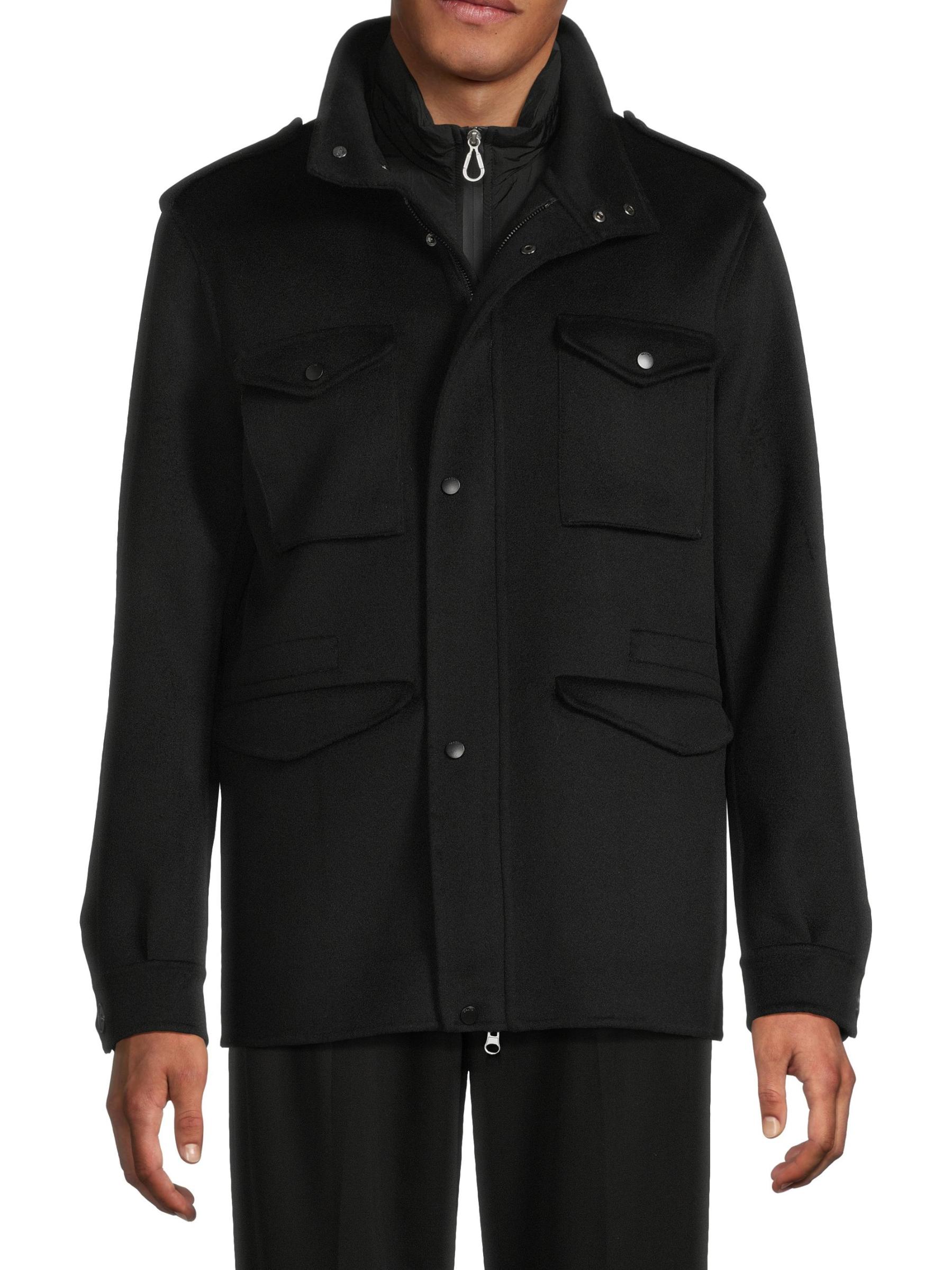 The Duccio field coat from Paltò is crafted of double-faced wool and features a detachable quilted vest. The piece includes multiple flap pockets and pleated elbows.Stand collar Long sleeves, pleated elbows Chest double-entry pockets with side entry, side welt pockets Drawstring waist Front zip closure, snap placket 100% wool Removable vest: 100% nylon Dry clean Made in Italy