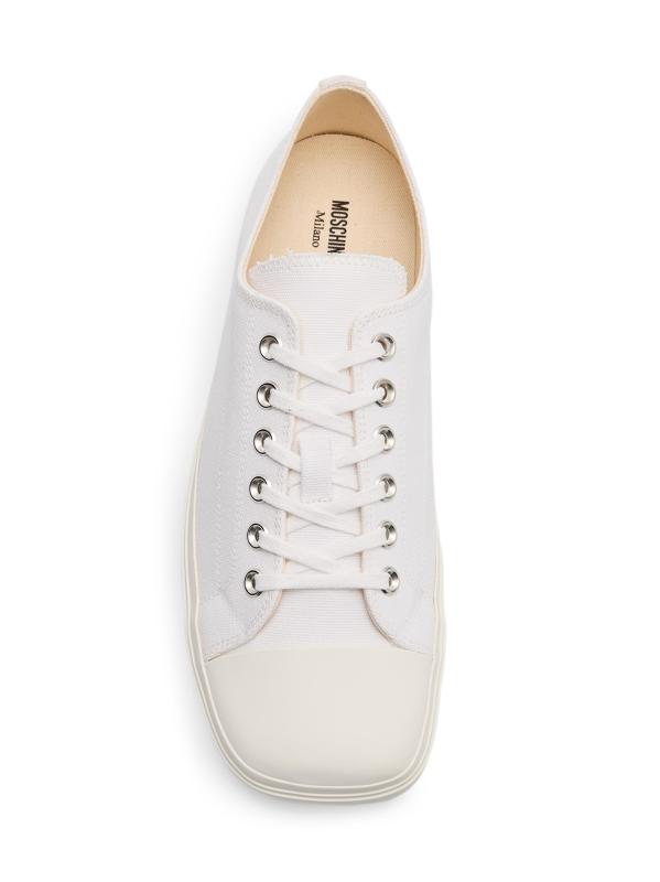 Designed with a classic rubber cap toe, these Edge sneakers from Moschino feature a low-top silhouette rendered in breathable cotton canvas. A heel counter logo completes the design.Round toe Lace-up style Canvas upper Cotton lining Rubber sole Made in Spain
