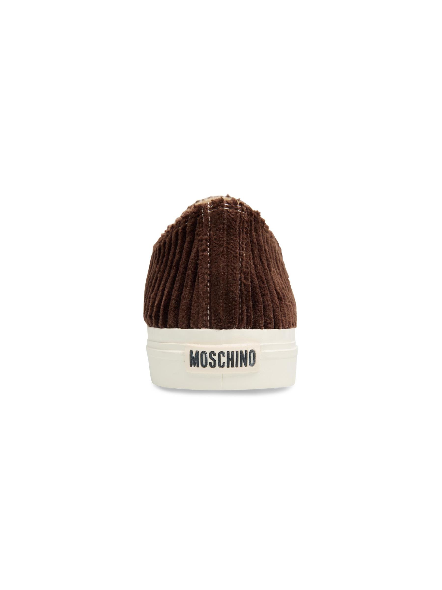 Designed with a classic rubber cap toe, these Edge sneakers from Moschino feature a low-top silhouette rendered in textured corduroy. A heel counter logo completes the design.Round toe Lace-up style Textile upper Cotton lining Rubber sole Made in Spain