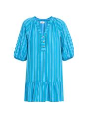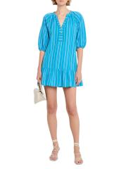 This Edie minidress from Xirena, crafted of cotton, features a shift silhouette, striped pattern, and split neck.