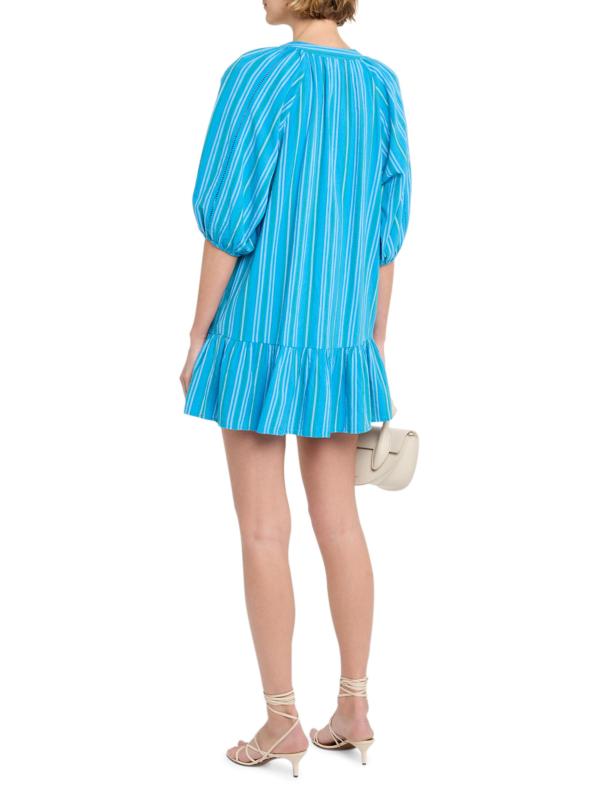 This Edie minidress from Xirena, crafted of cotton, features a shift silhouette, striped pattern, and split neck.Split neck Elbow-length raglan puff sleeves Elasticized cuffs Flounce hem Button front closure Machine wash Cotton Imported