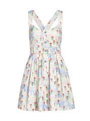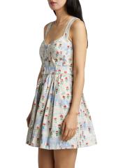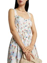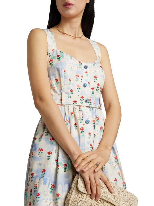 Crafted of stretch cotton, this Eileen sleeveless floral minidress from Hunter Bell is designed with a scoopneck, belt loops, side slip pockets, and a crisscross back.Scoopneck Shoulder straps Belt loops Side slip pockets Button front closure 97% cotton/3% spandex Dry clean Imported