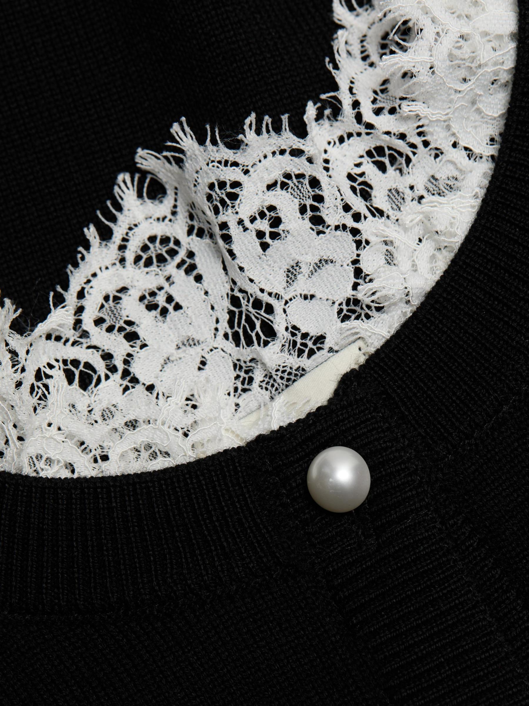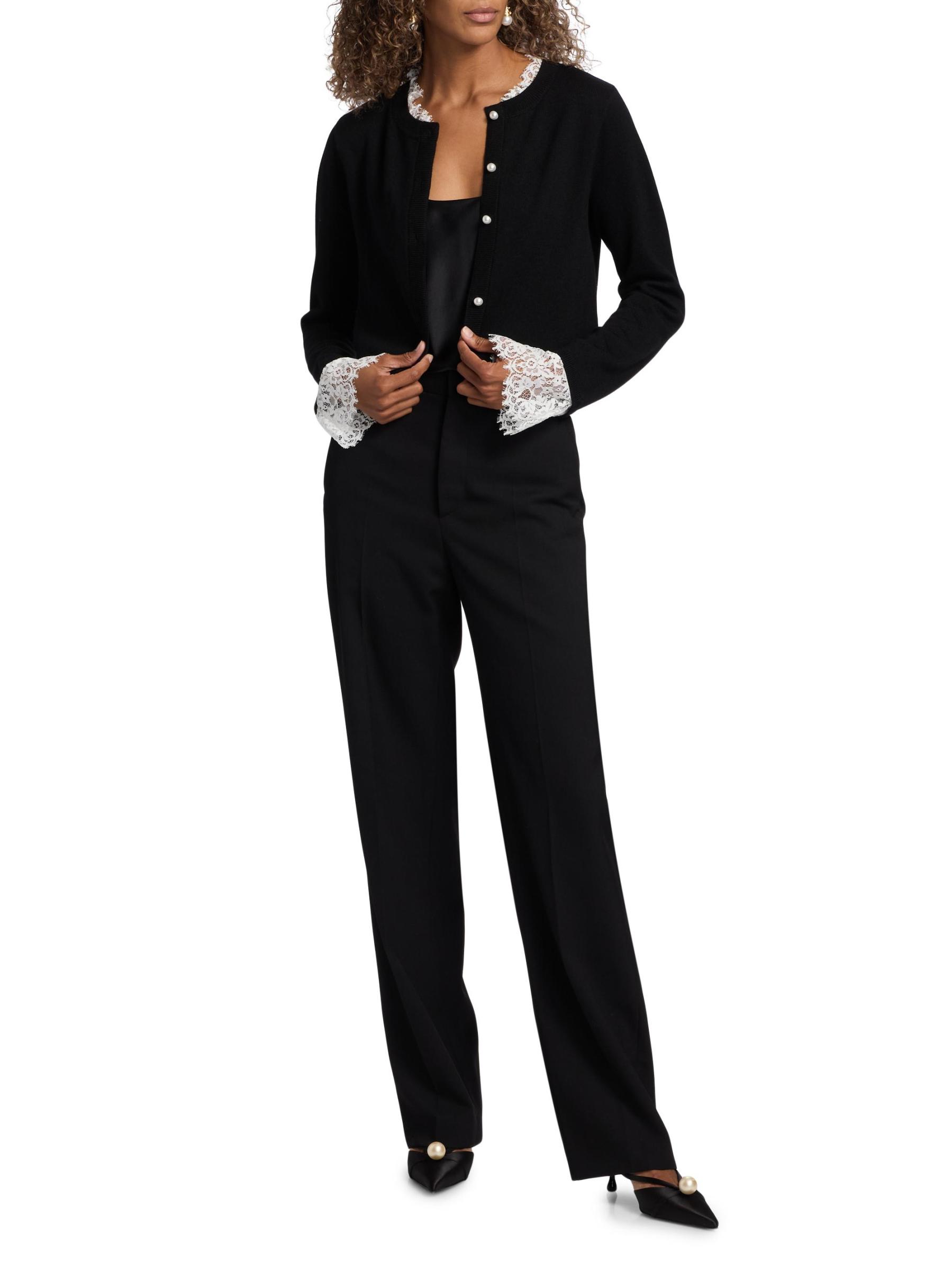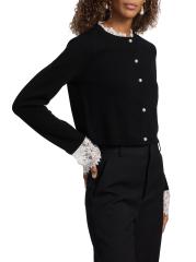 Knit from extra-fine merino wool, this cozy Eliana cardigan from Cami NYC is embellished with lace trim at the neck and cuffs.Crewneck Long sleeves Lace trim Button front closure 100% merino wool Dry clean Imported