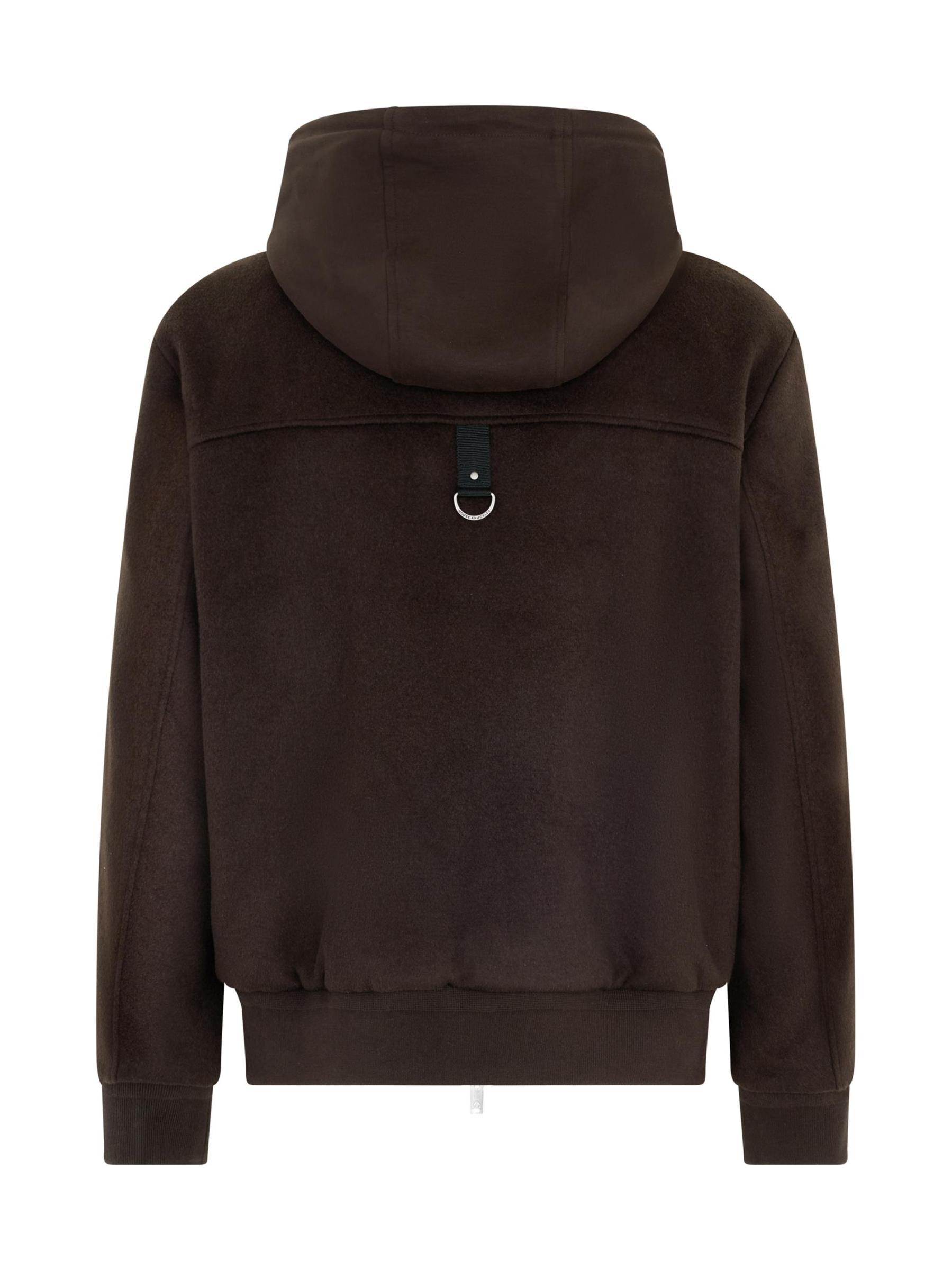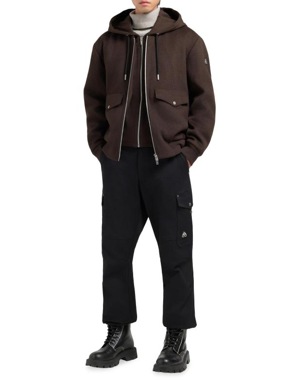 Moose Knuckles' Ellington bomber jacket features an easy-to-wear design with a wool outer and a removable zip-in layer. The style includes an adjustable drawstring hood, front seam detailing, and snap flap pockets.