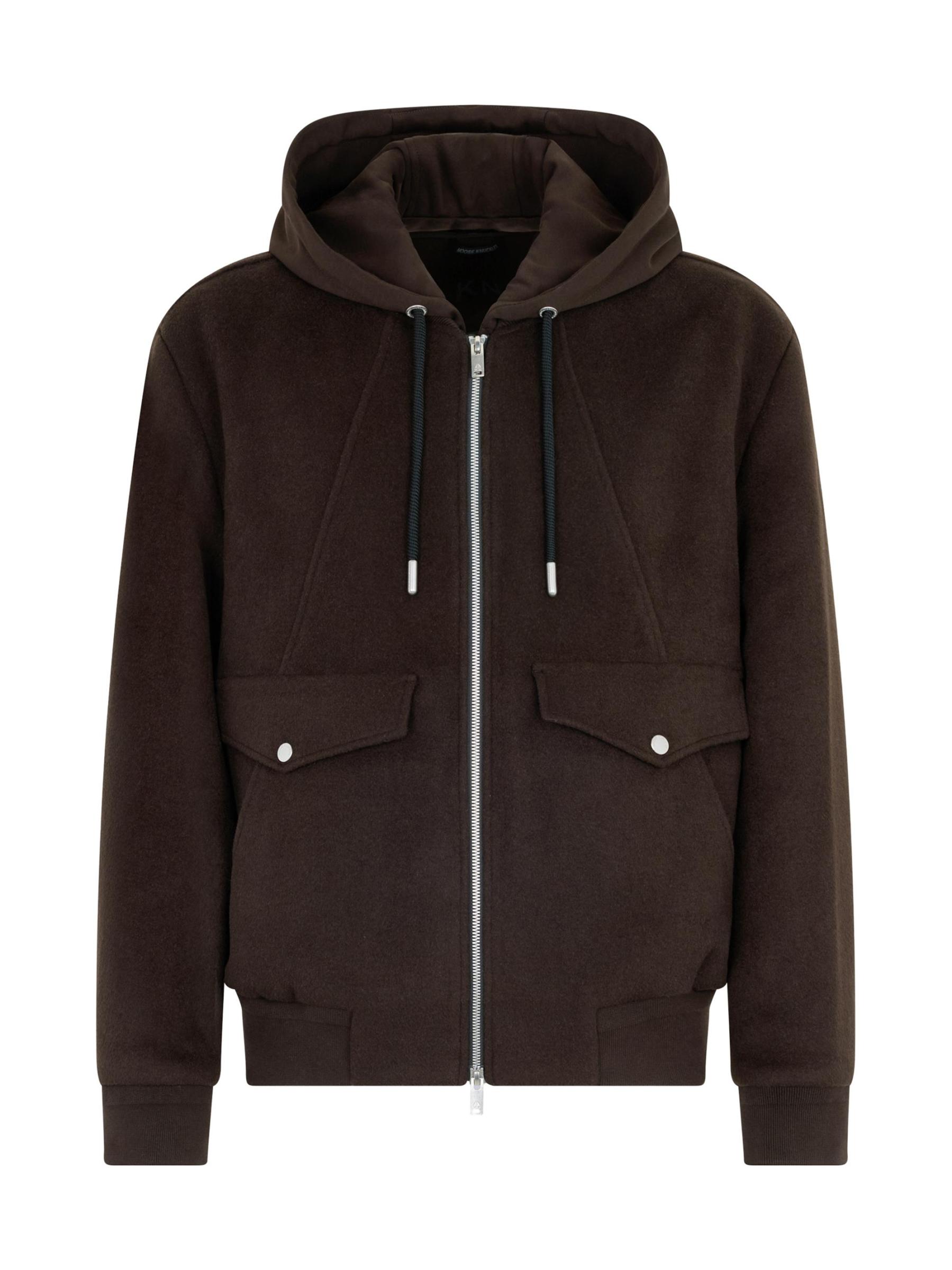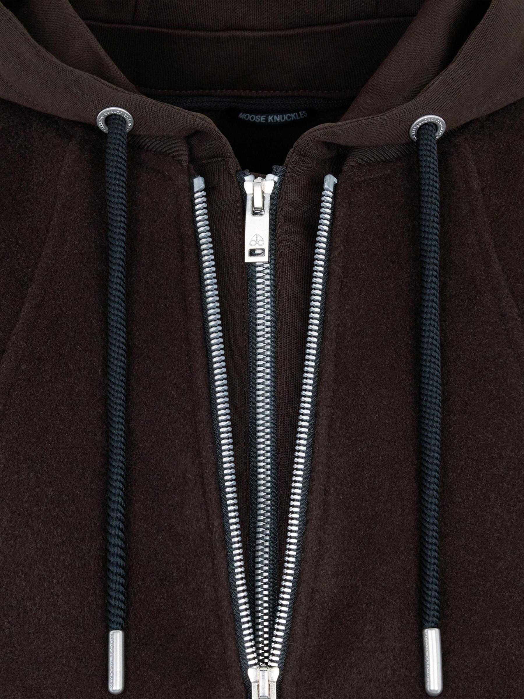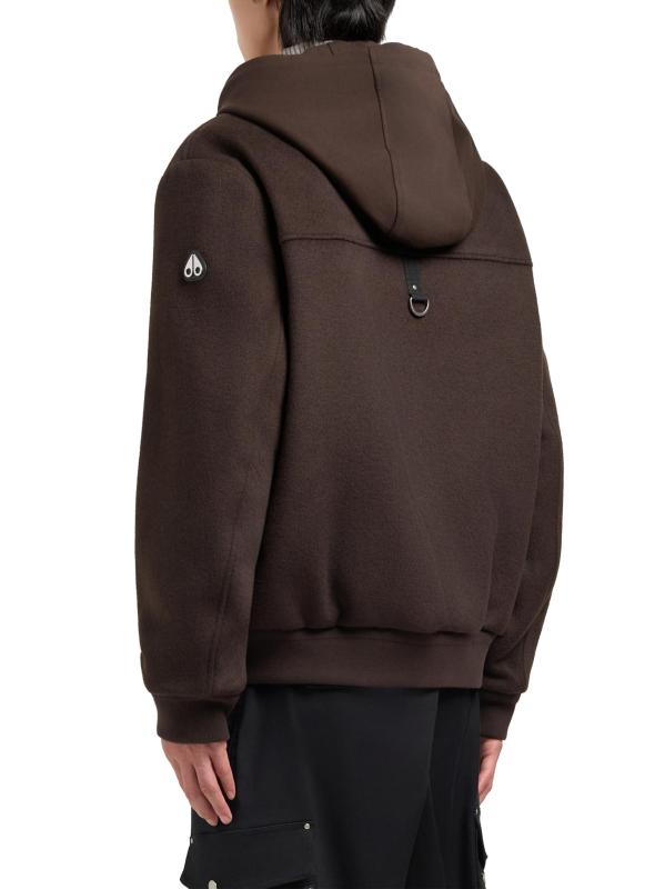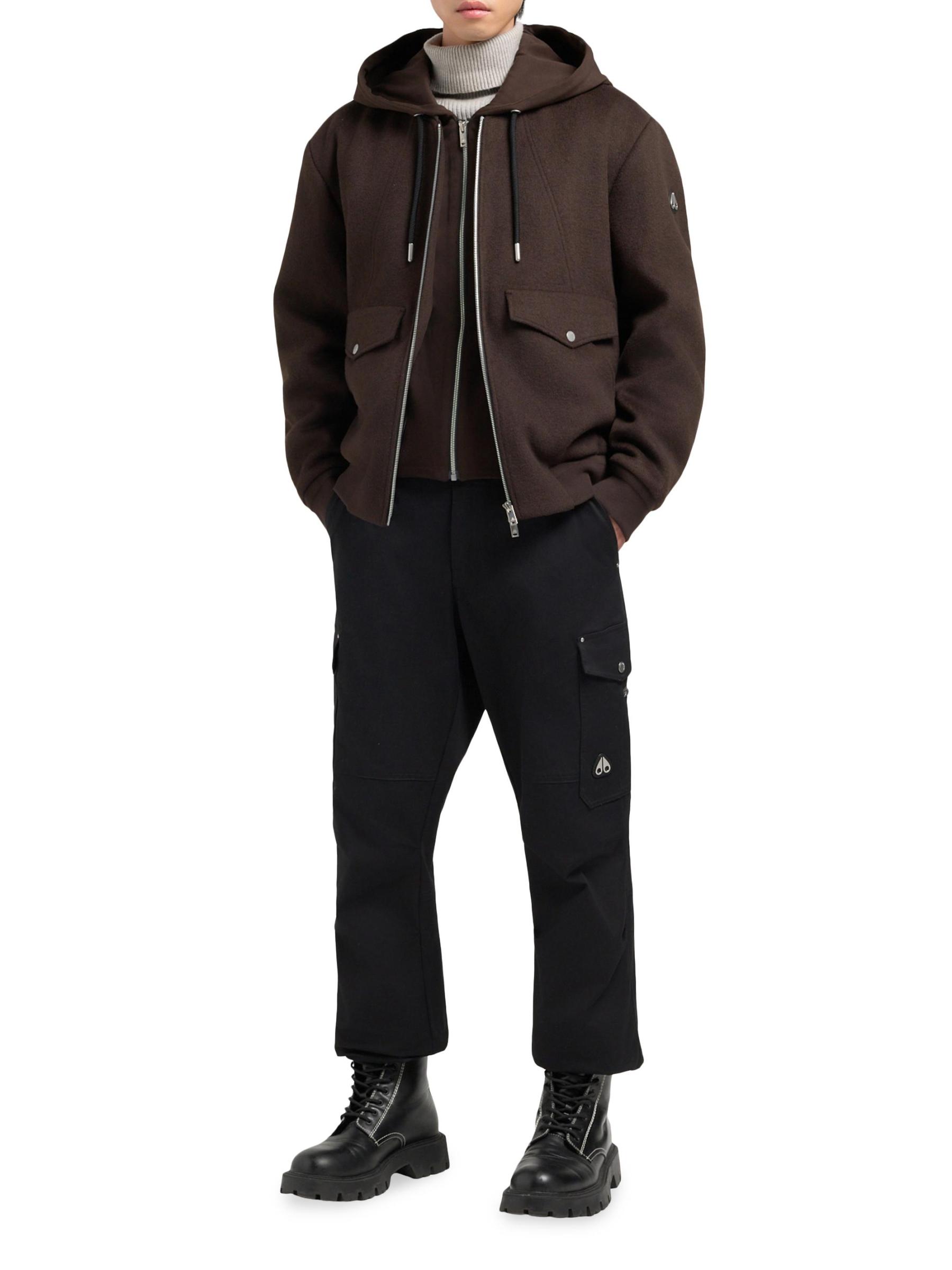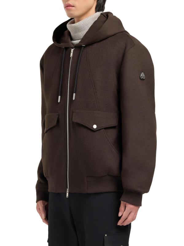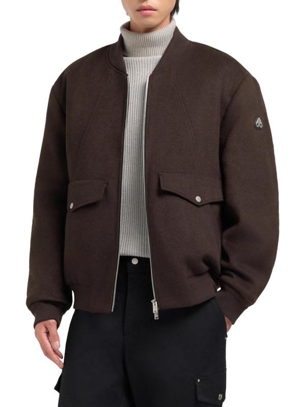 Moose Knuckles' Ellington bomber jacket features an easy-to-wear design with a wool outer and a removable zip-in layer. The style includes an adjustable drawstring hood, front seam detailing, and snap flap pockets.Drawstring hood Long sleeves Snap flap pockets Two-way front-zip closure 60% wool/30% polyester/10% other fibers Lining: 95% Polyester, 5% Elastane Dry clean Imported