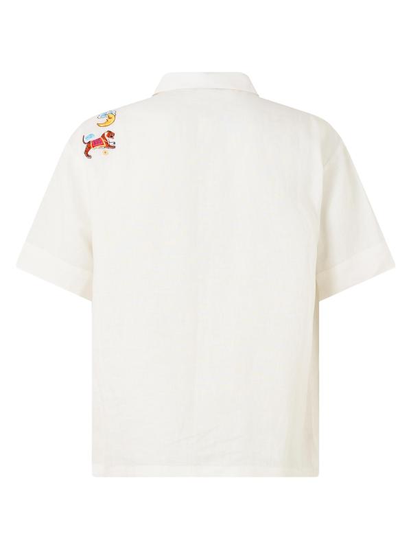 Embroidered Pleated Linen Shirt