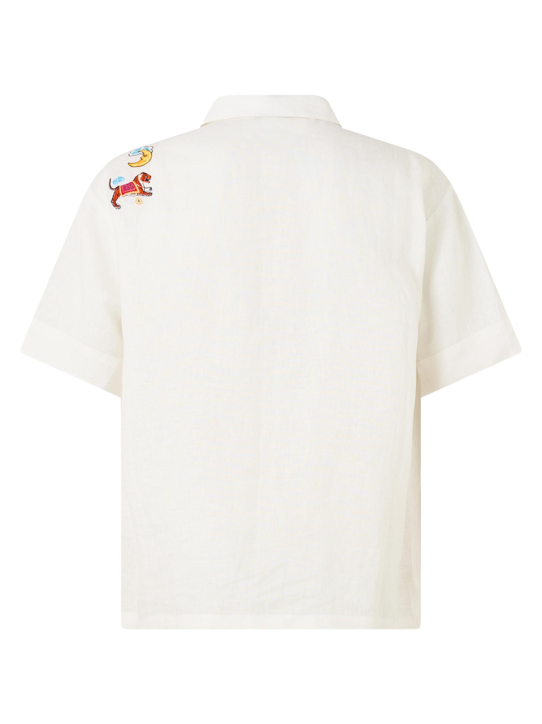 Cappadocia-inspired embroidery details this linen camp shirt from Camilla. Pintuck pleating lends added structure to this button-front style.