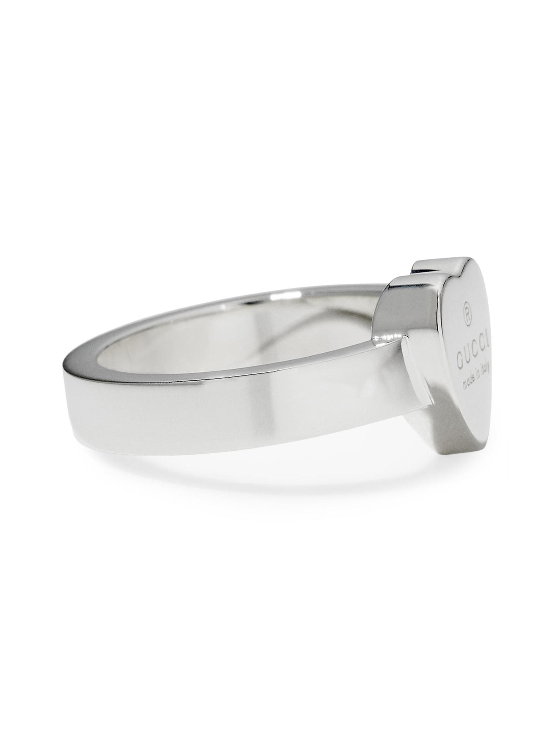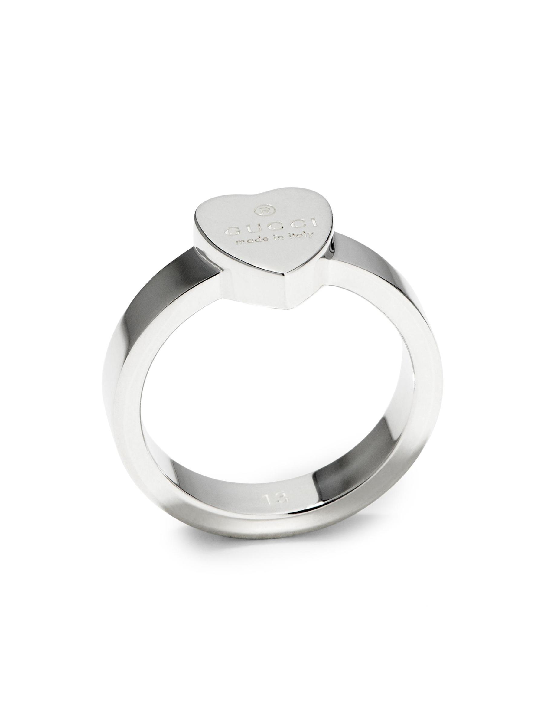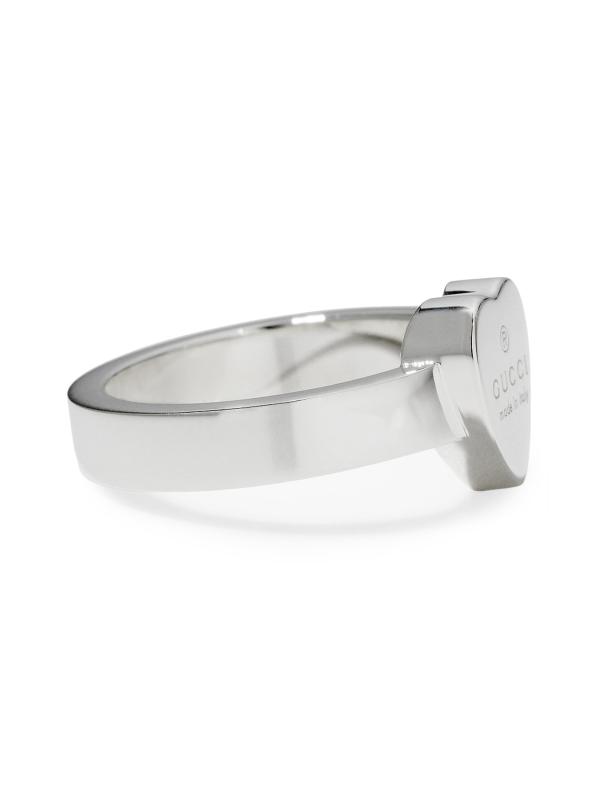 An engraved heart charm centers Gucci’s sterling silver band ring.Sterling silver Made in Italy