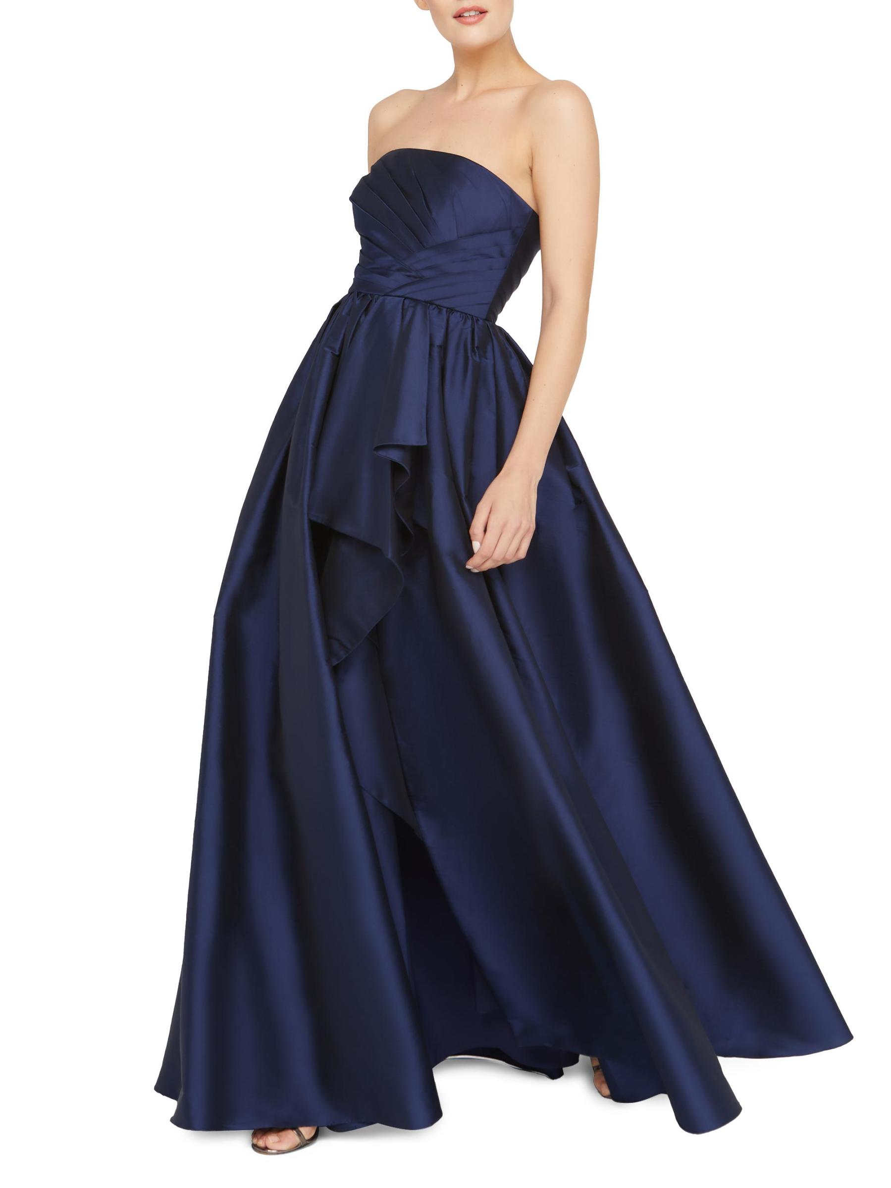 Theia's taffeta Esmerina gown features an asymmetric ruffle bodice detail, a fitted waist, and a voluminous, floor-length, gathered skirt.Asymmetric neck Sleeveless Concealed back zip closure 100% polyester Dry clean Imported