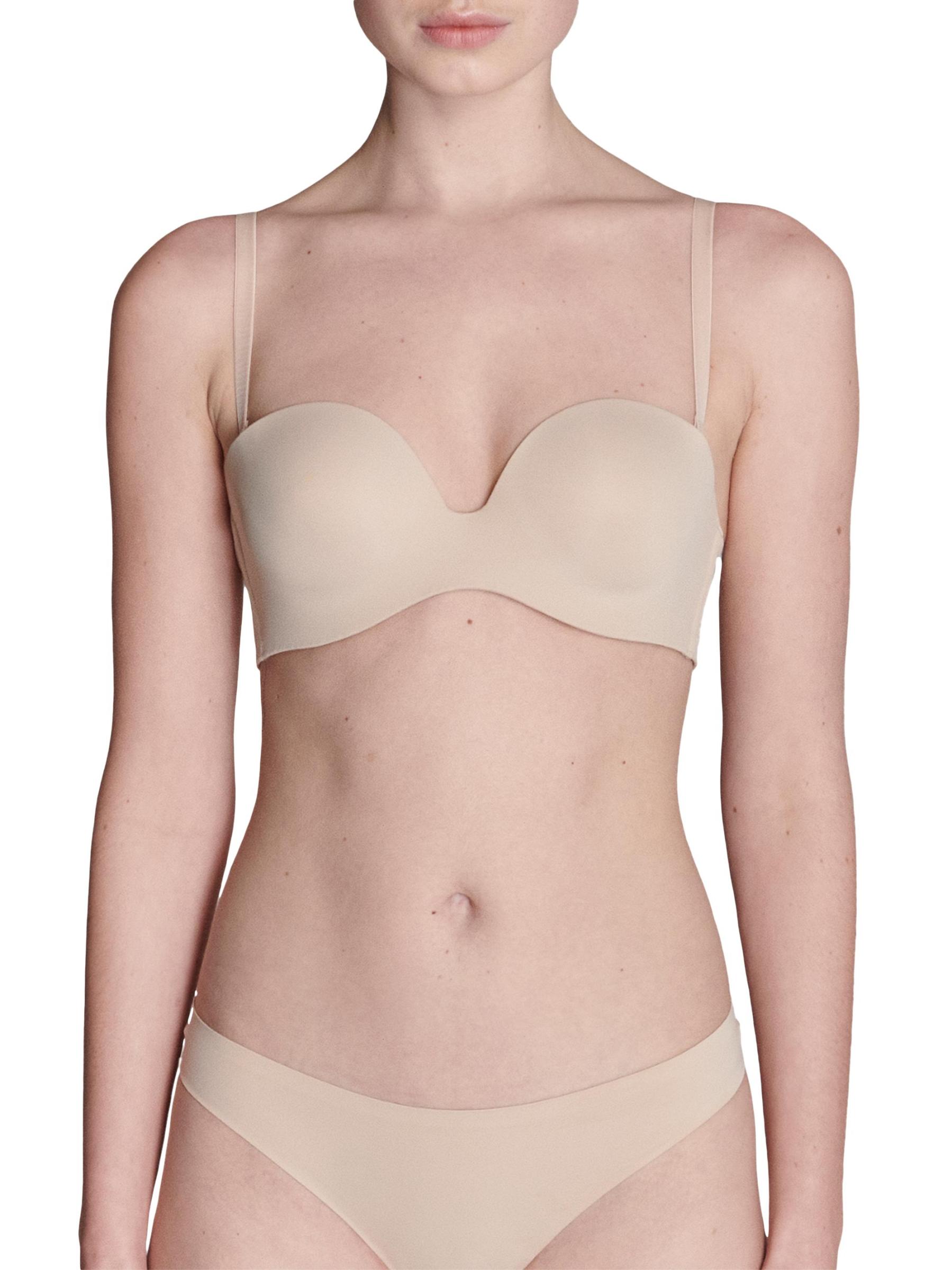 Simone Pérèle's essential microfiber bra features a plunging sweetheart neck, molded cup for lift and shape, memory foam pads for enhanced cleavage, side boning and hidden underwire for added support. This style is complete with removable, adjustable straps that can be worn multiple ways.