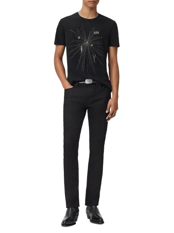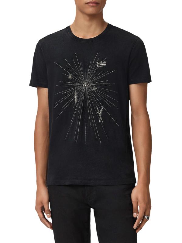 Crafted of cotton jersey, this crewneck T-shirt from John Varvatos showcases a starburst design with beaded-stitch embroidery at the front.